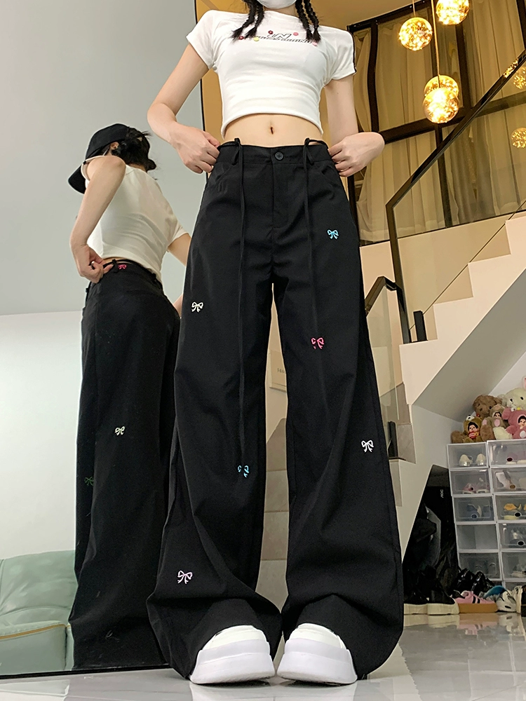 | nameOriginal | Designed bow embroidered casual pants for women 2024 spring and summer high-waisted lace-up loose slimming wide-leg floor-length pants |