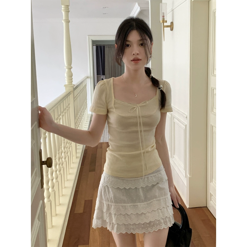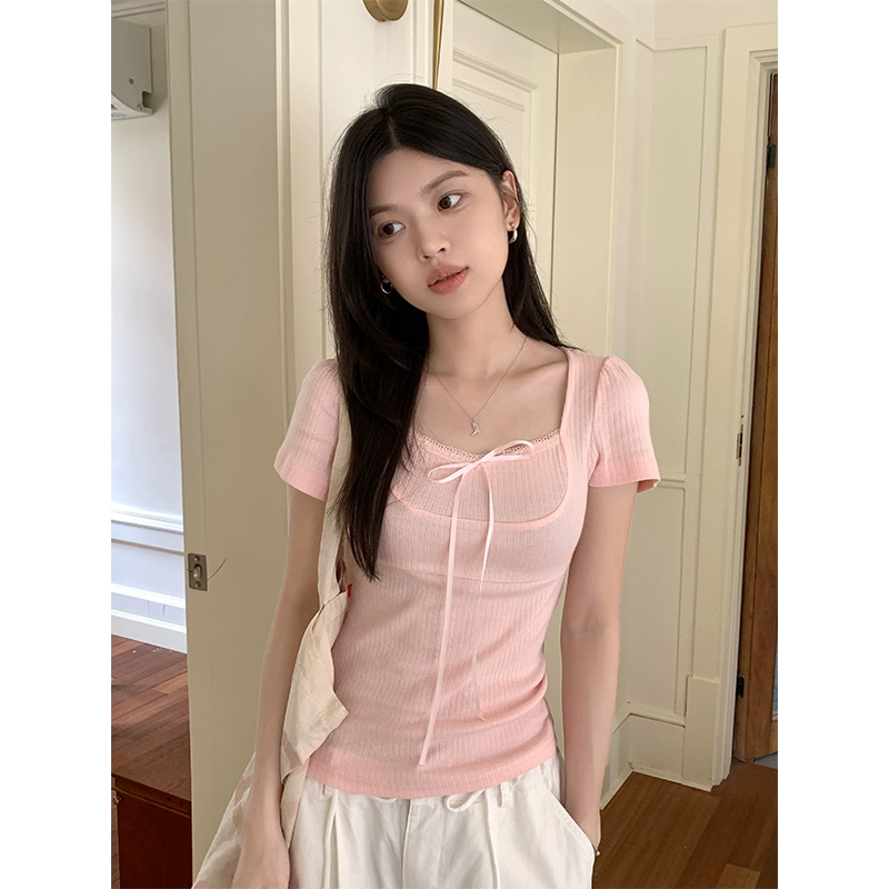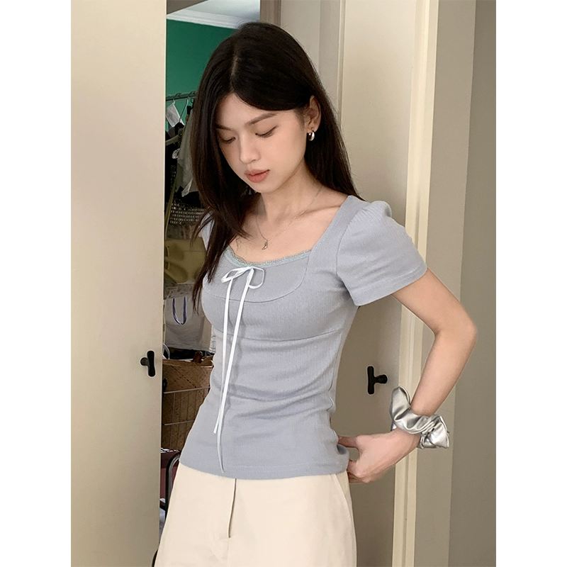 | nameOriginal | Designed bow short sleeve summer slim lace trim |