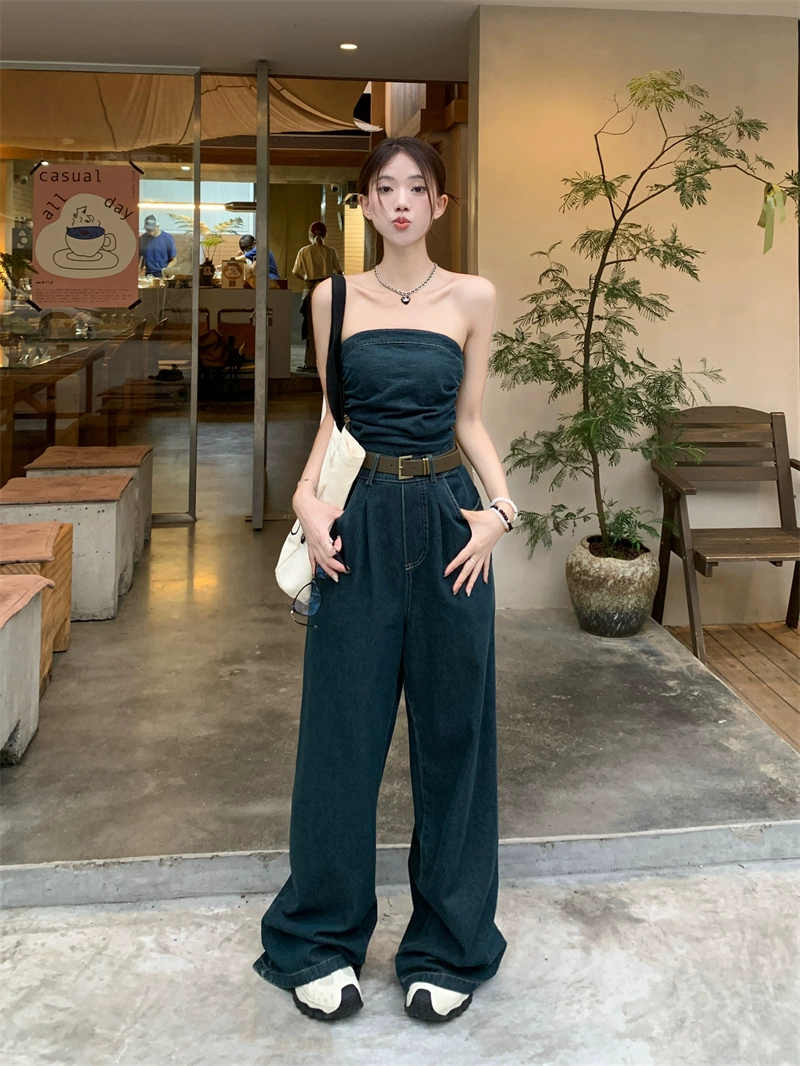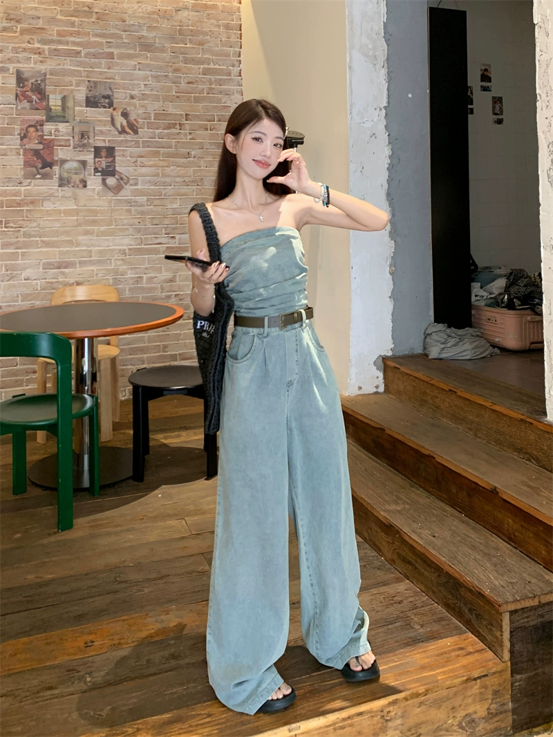 | nameOriginal | Designed high-waisted denim wide-leg trousers straight tube top |