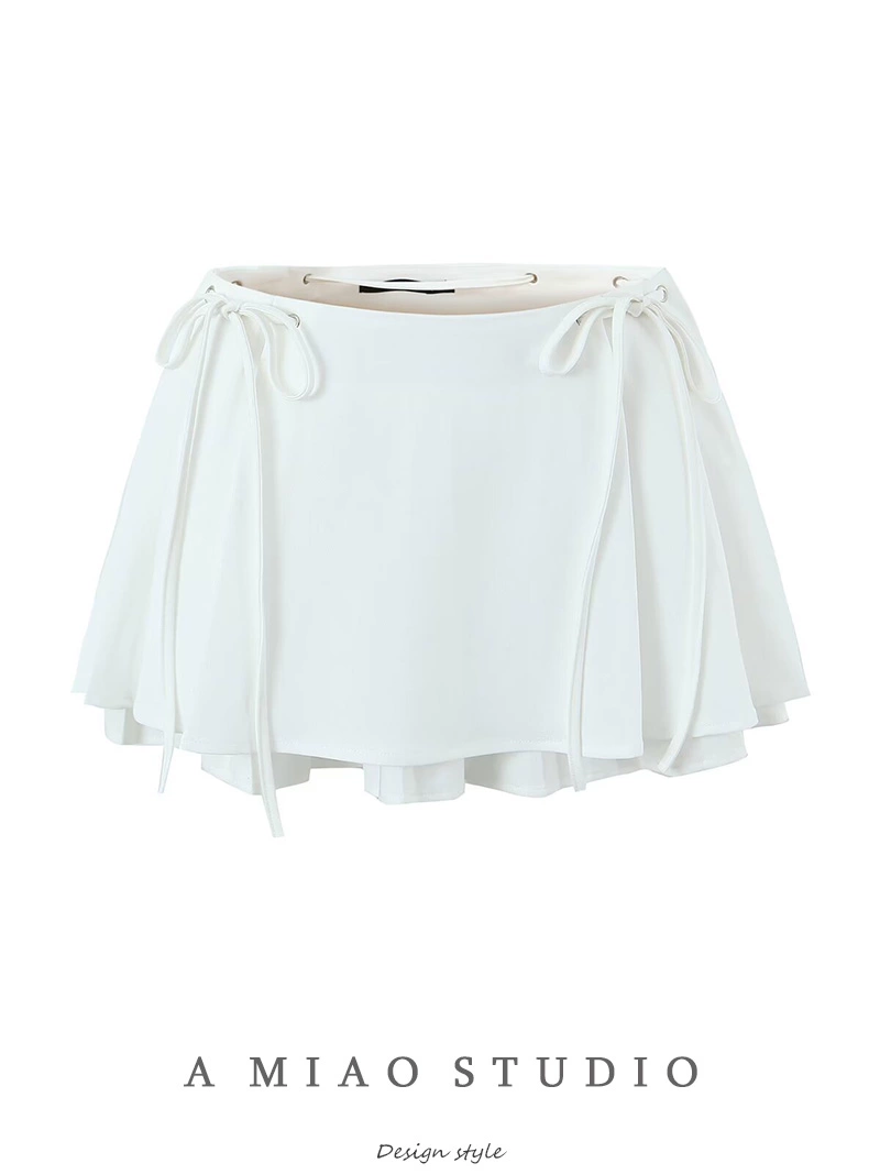 | nameOriginal | Designed lace-up double-layered low-waist pleated skirt |