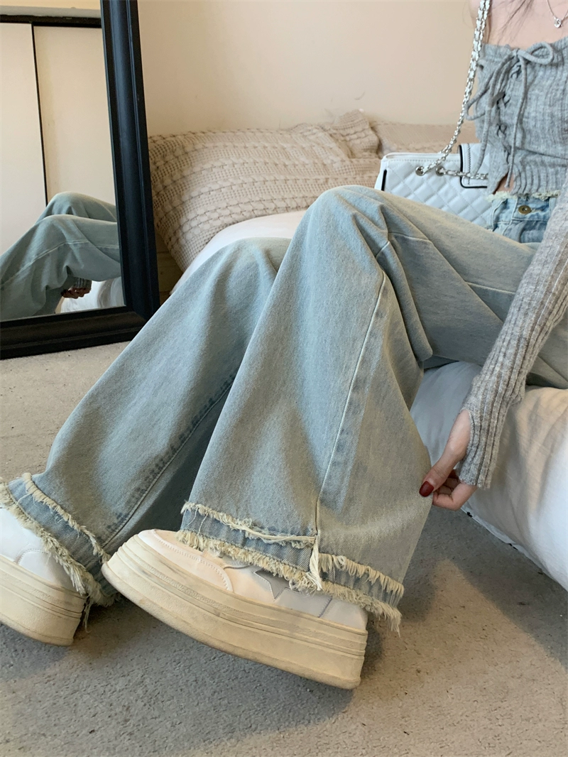 | nameOriginal | Designed light blue retro high-waisted straight jeans |