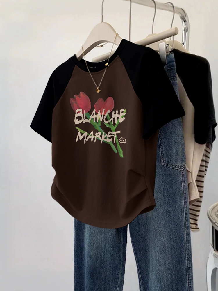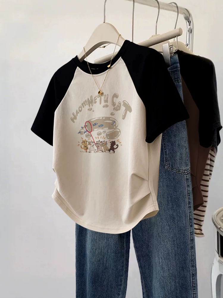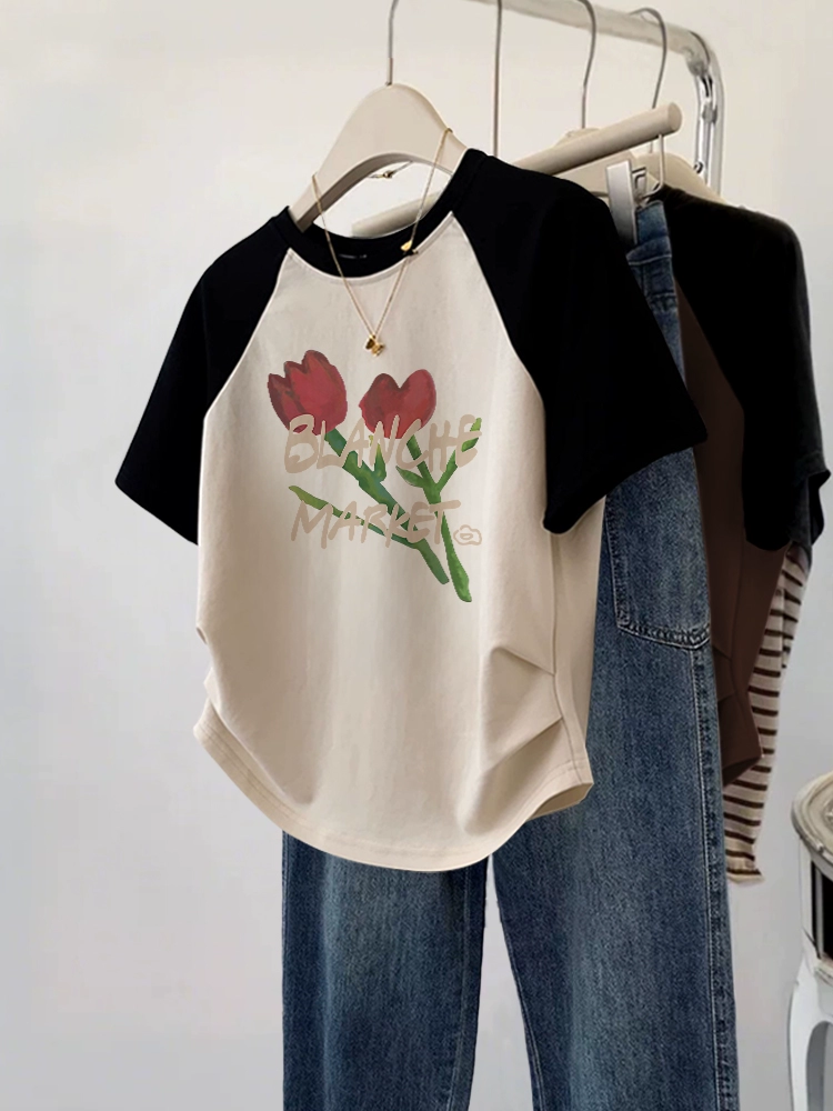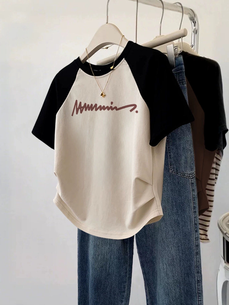 Design-sensory short-sleeved large-size fat mm summer slim T-shirt