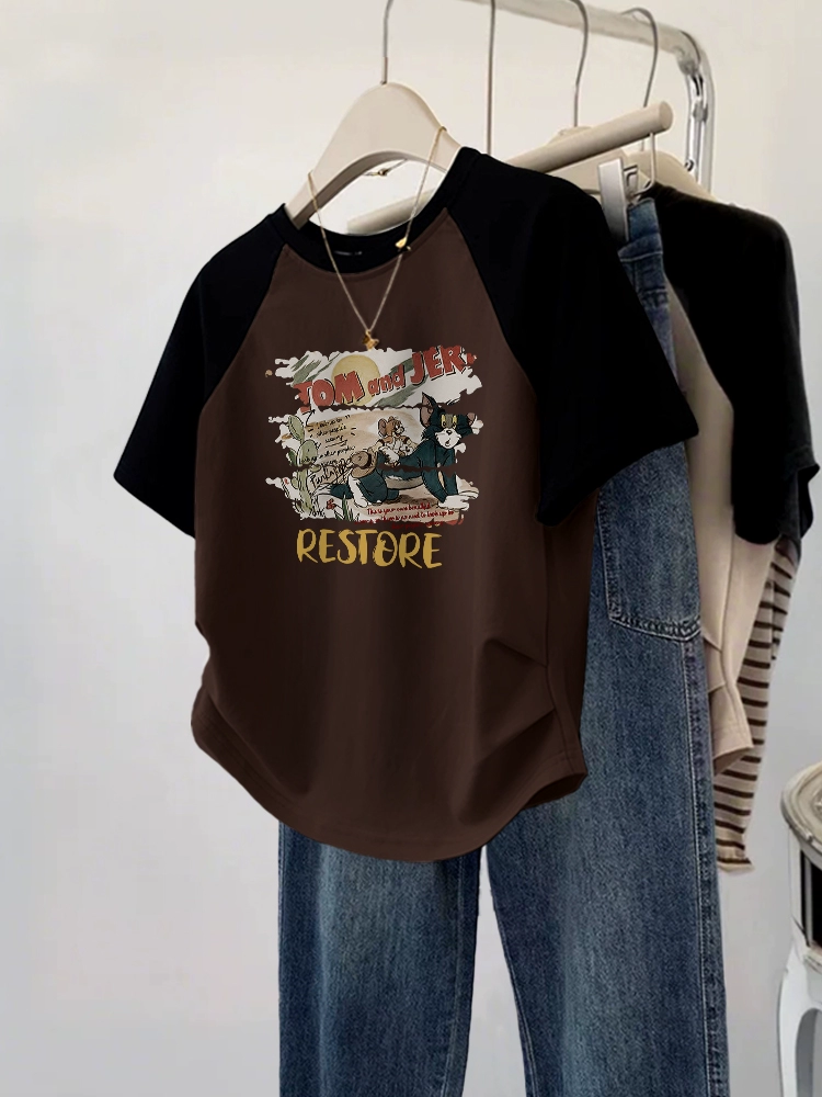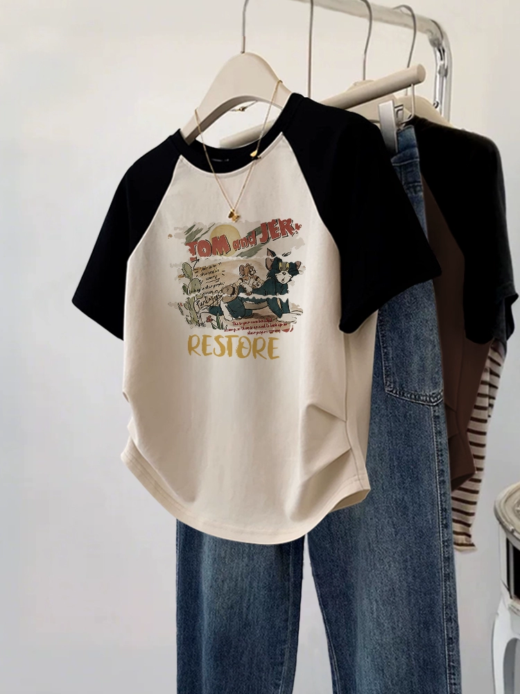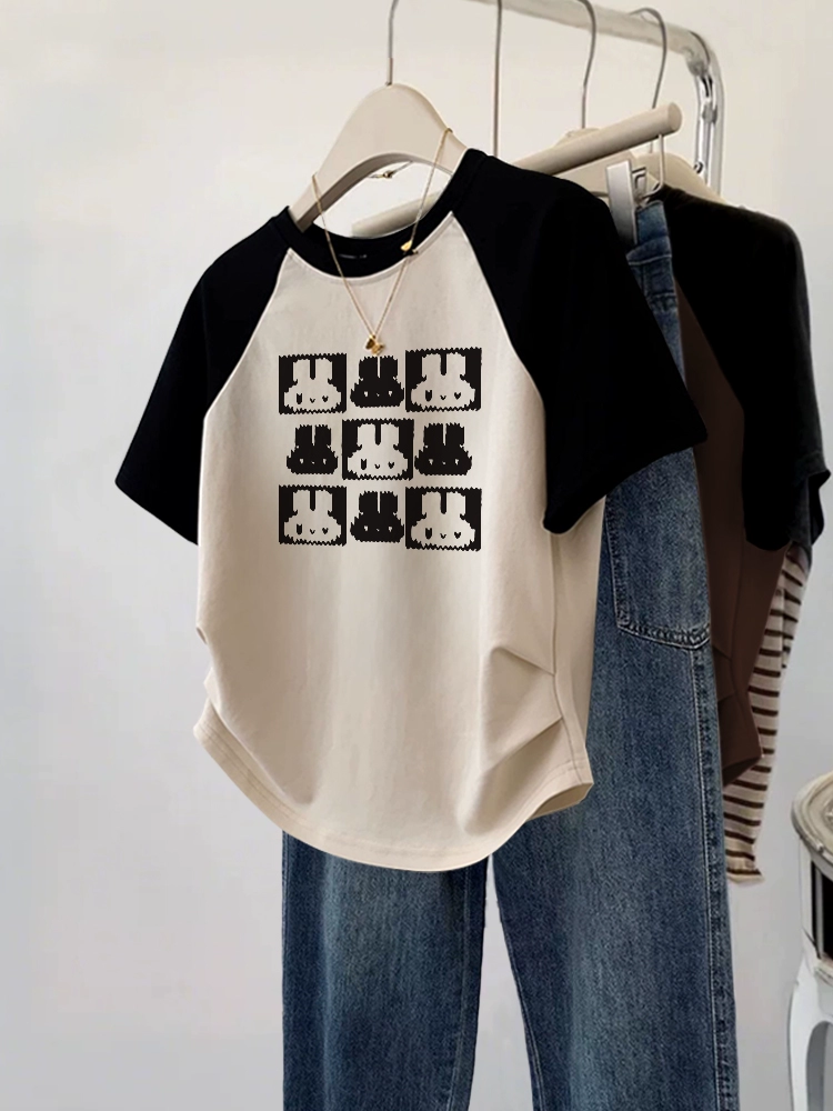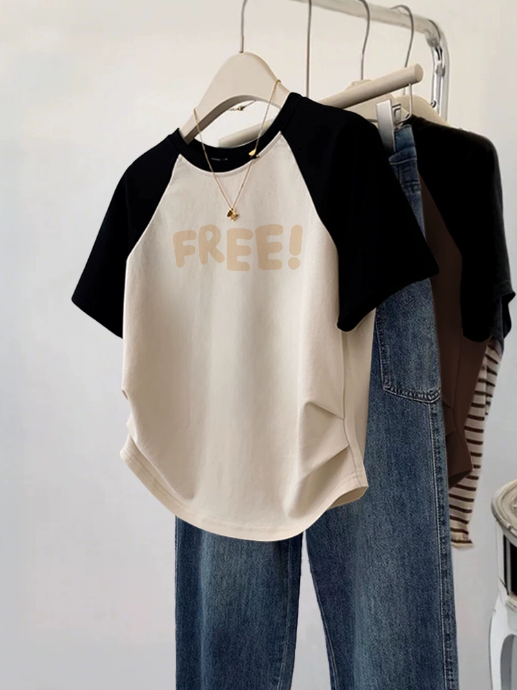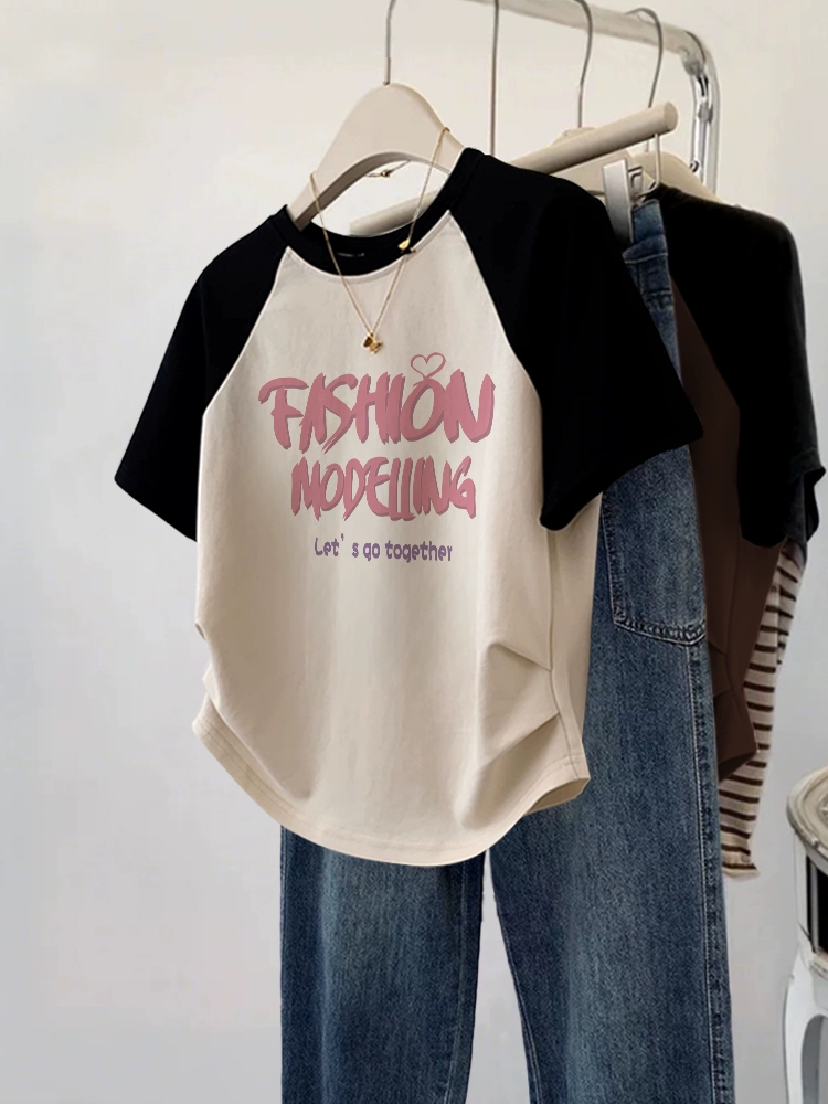 Designed short-sleeved plus size fat mm summer slim T-shirt