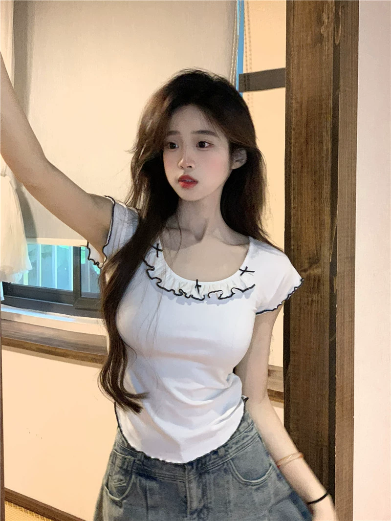 | nameOriginal | Designed short-sleeved summer slim-fitting top with bow |