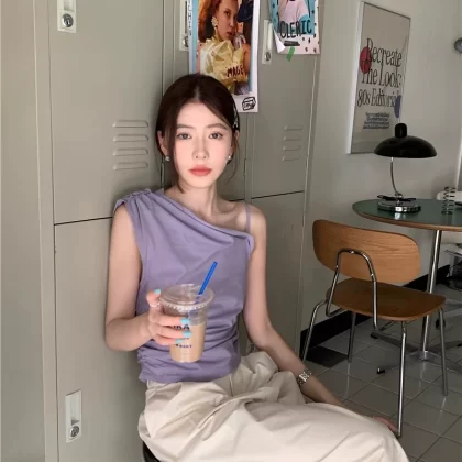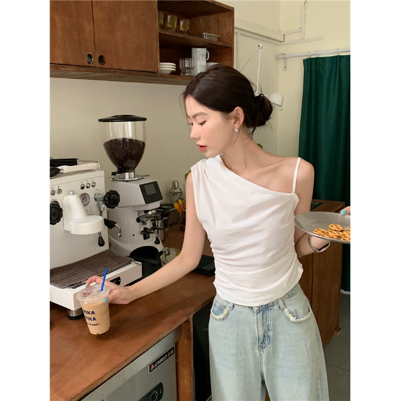 | nameOriginal | Designed sleeveless off-shoulder pleated waist top shirt |