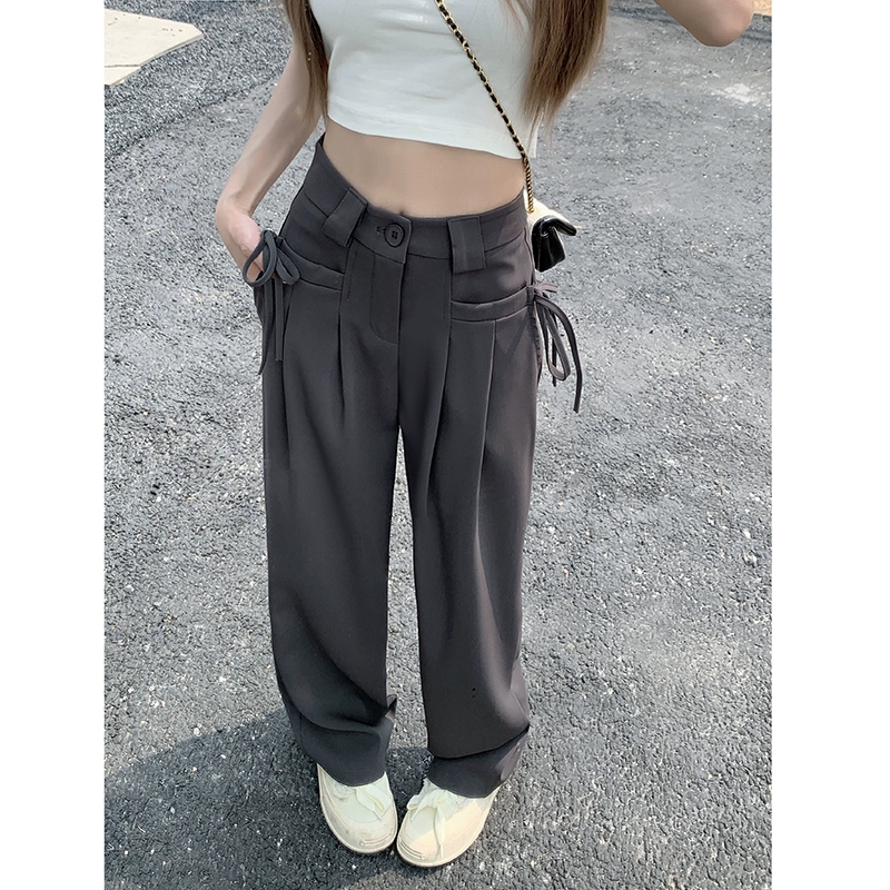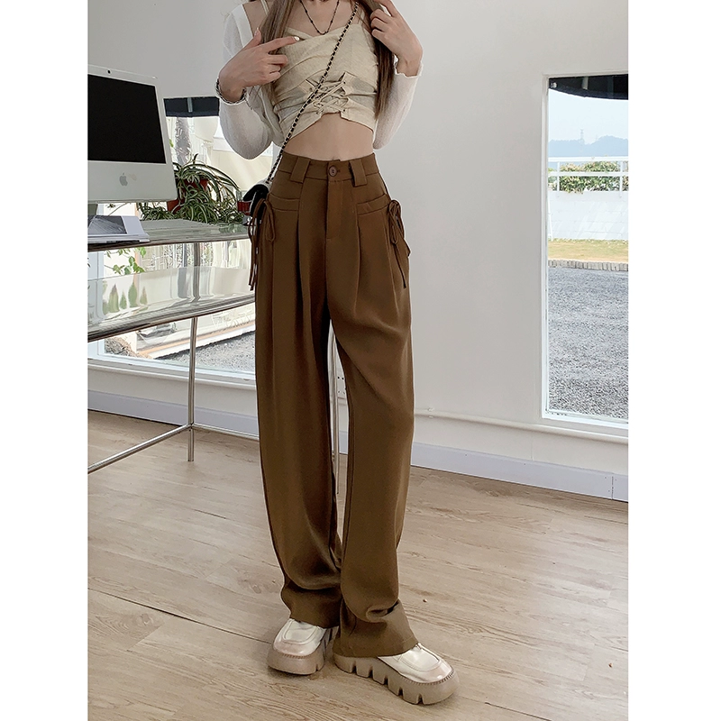 | nameOriginal | Designed straight high-waisted slim casual trousers |
