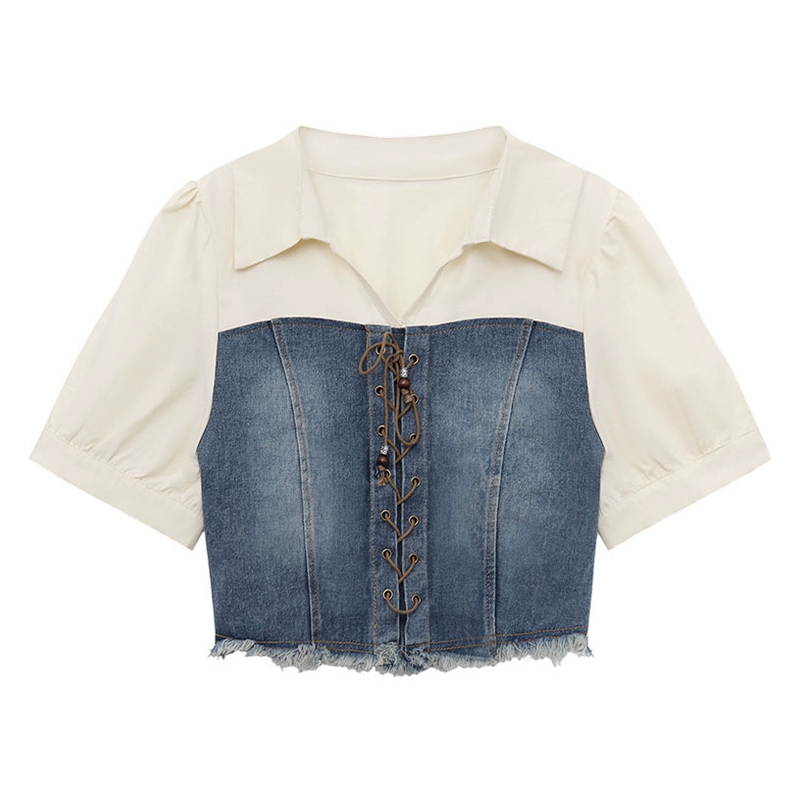 | nameOriginal | Designed straps and spliced denim women's summer short sleeves |