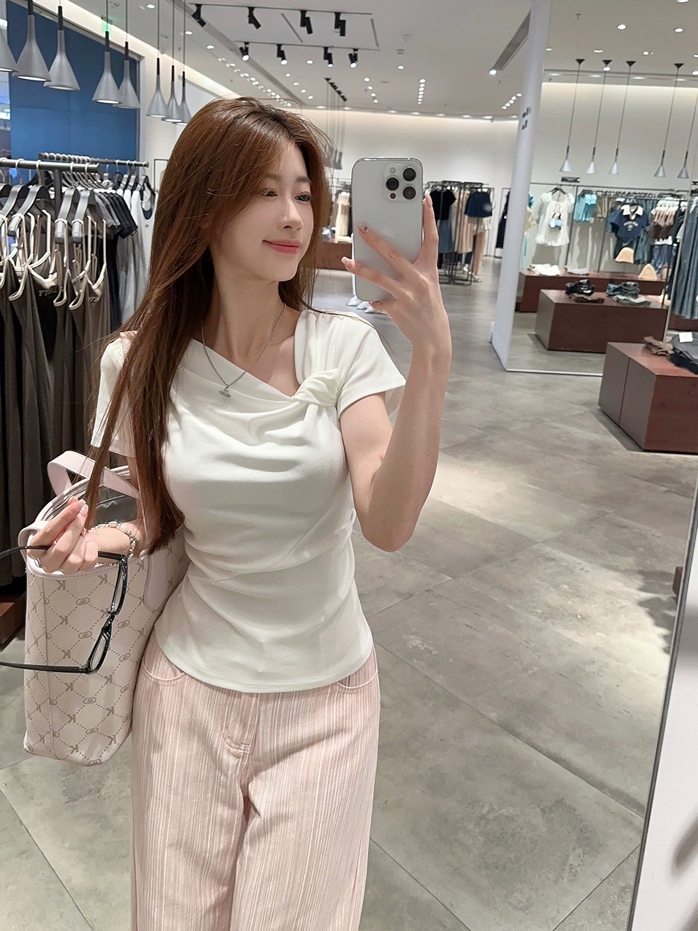 Designed summer fashion slimming solid color short-sleeved T-shirt