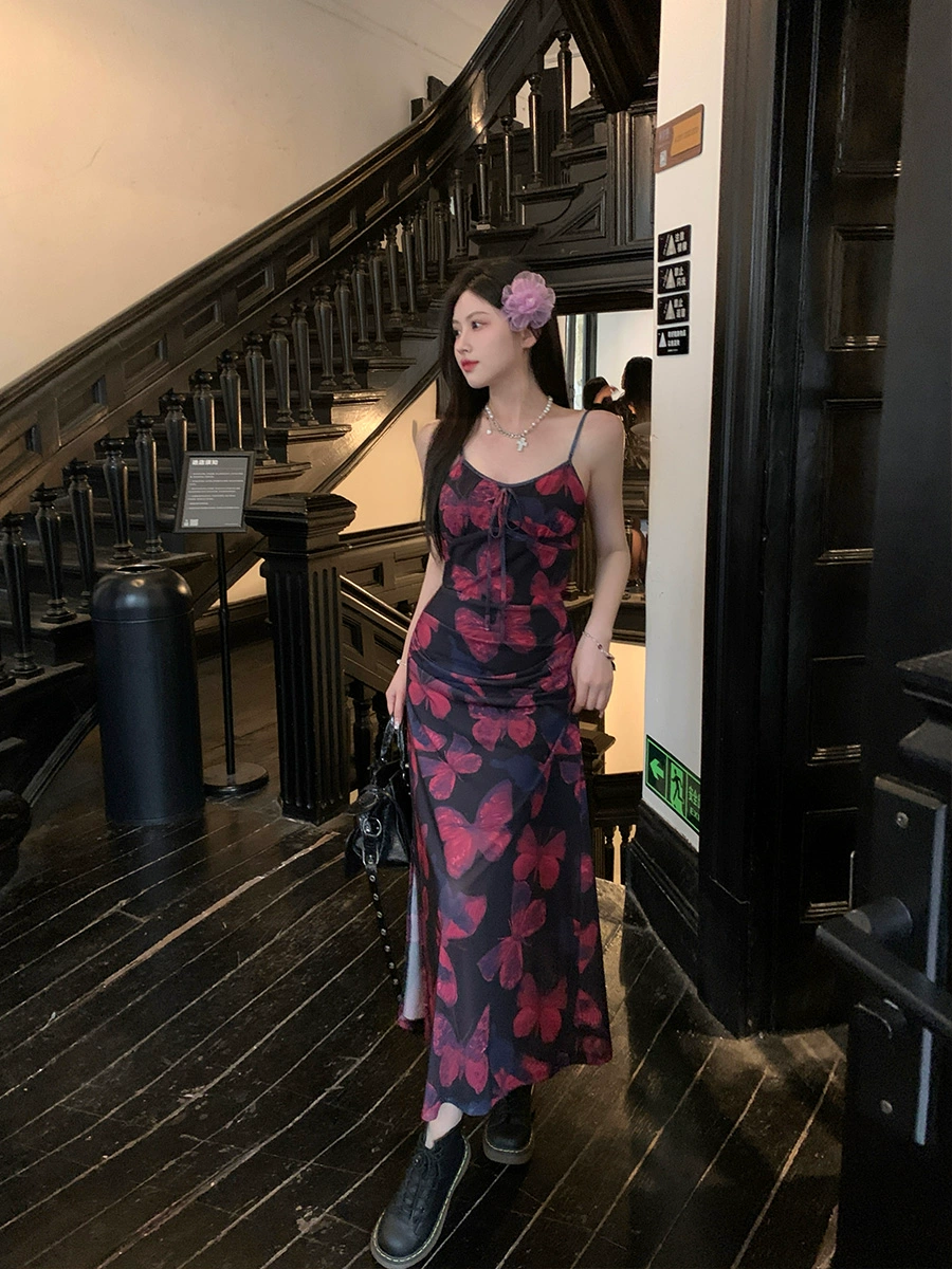 | nameOriginal | Designed summer fat girl suspender print dress |