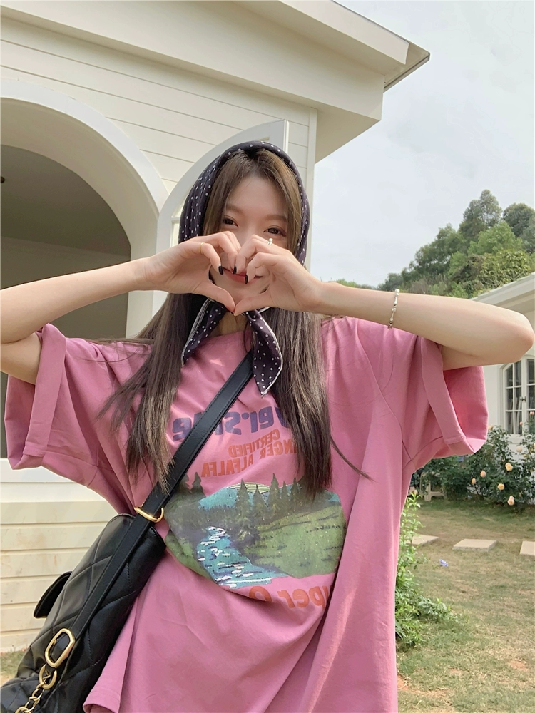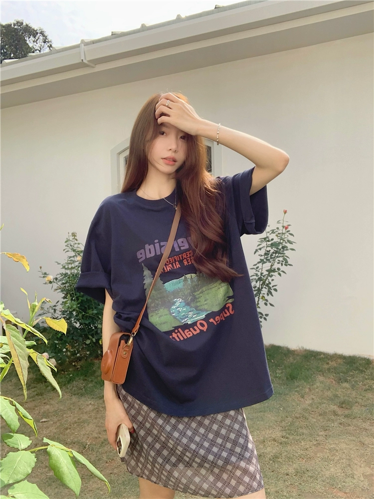 Designed summer loose top printed short-sleeved T-shirt