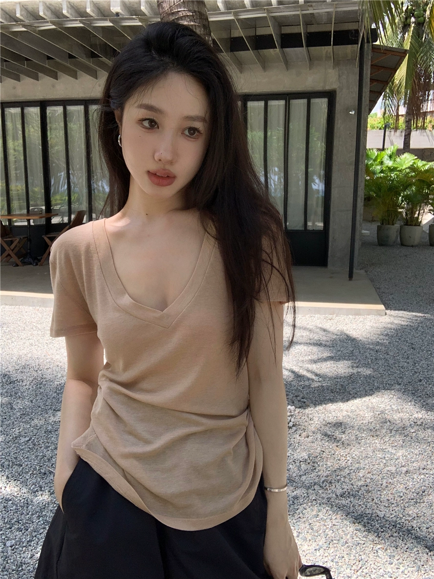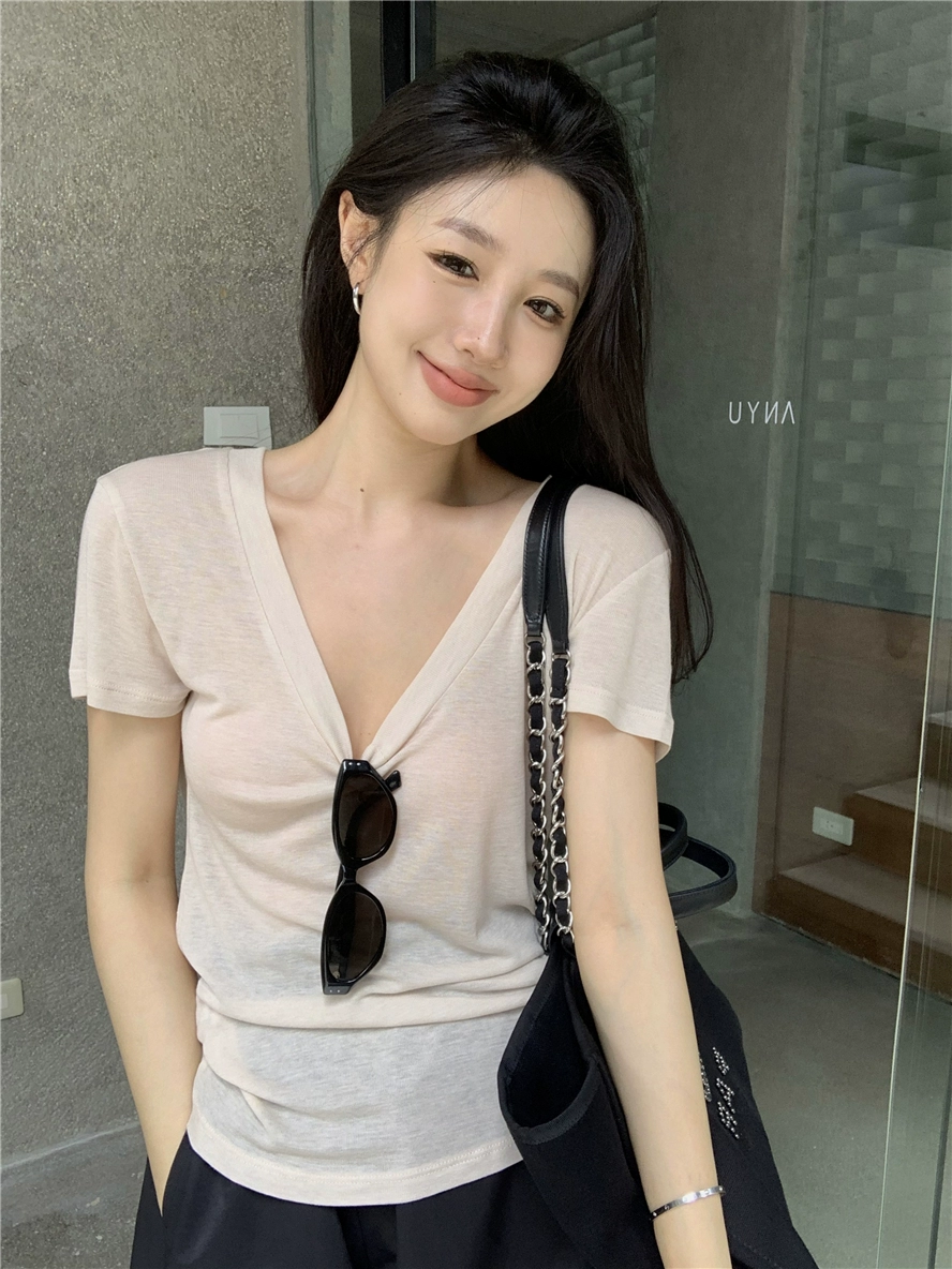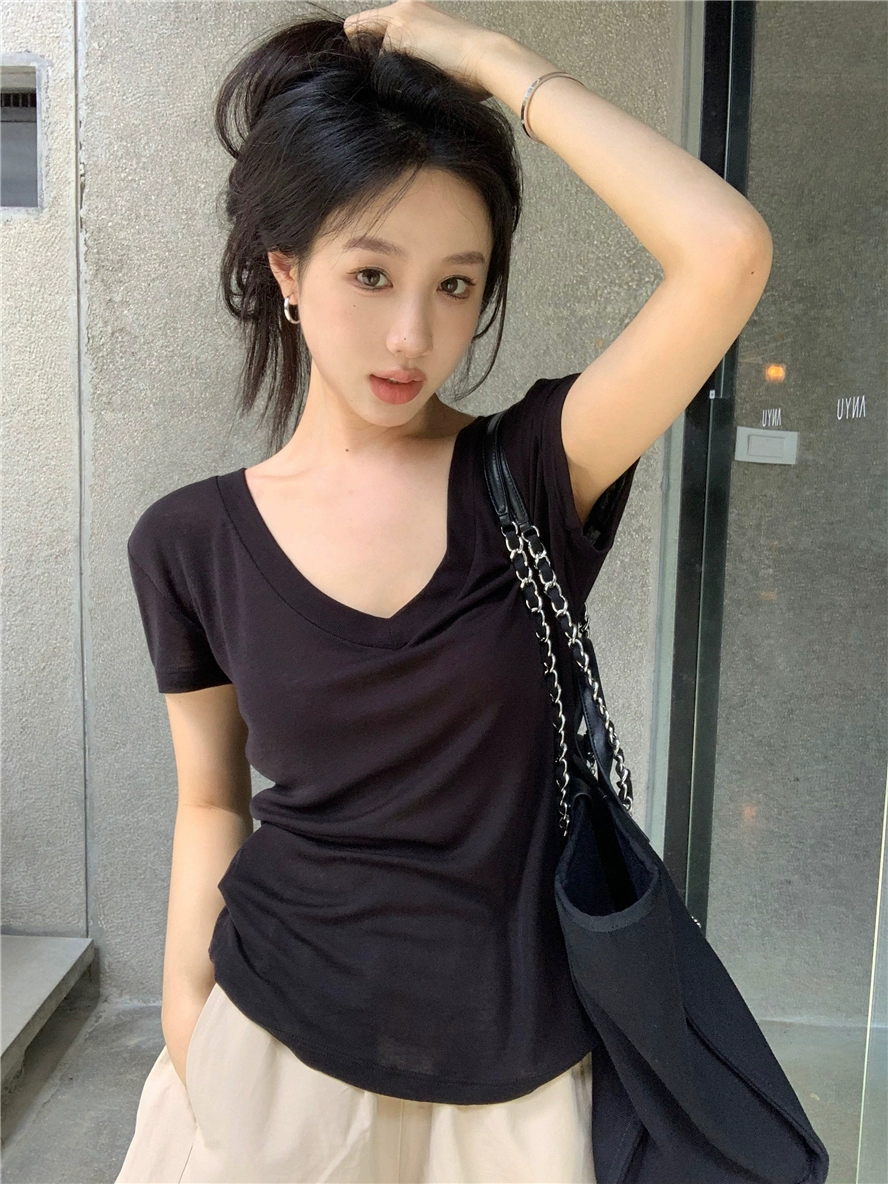 Designed thin summer slim-fit top V-neck T-shirt