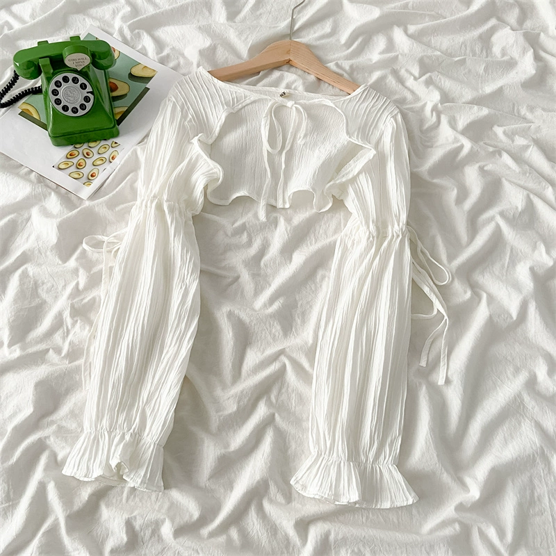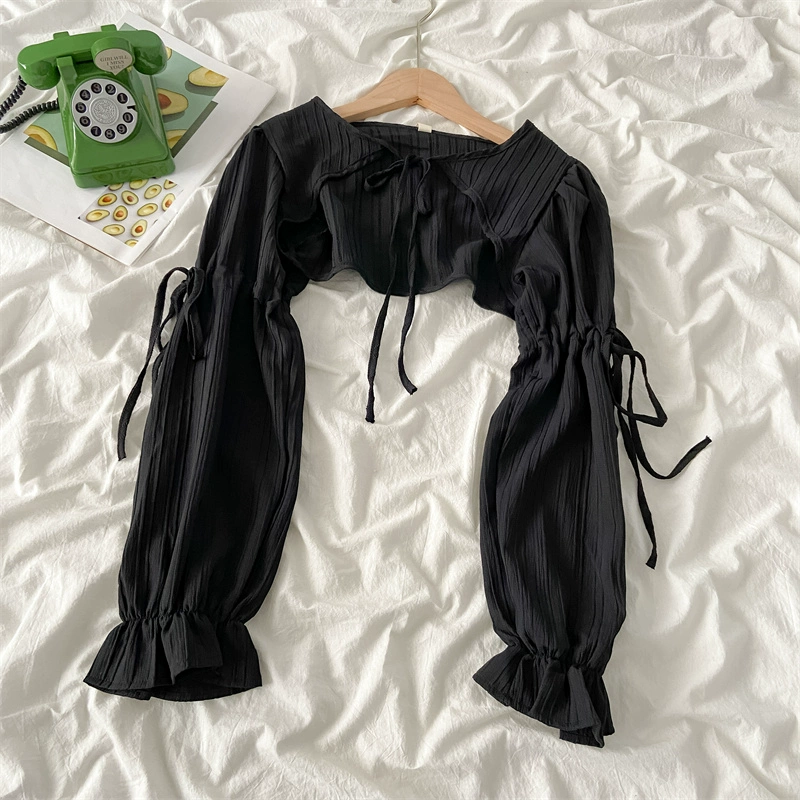 Design-sensual lace-up temperament long sleeves with layered shoulders