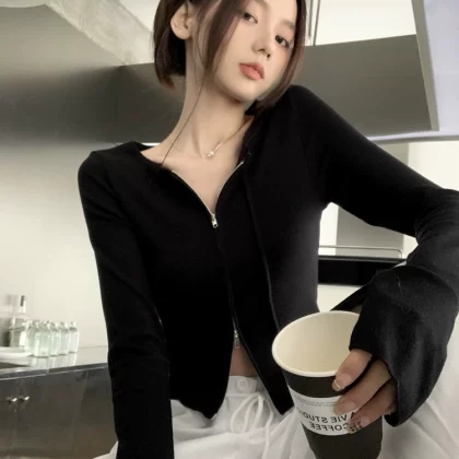 | nameOriginal | Designed zipper short slim fit top long sleeve T-shirt |