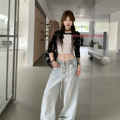 | nameOriginal | Designer lace-up high-waisted wide-leg floor-length jeans |