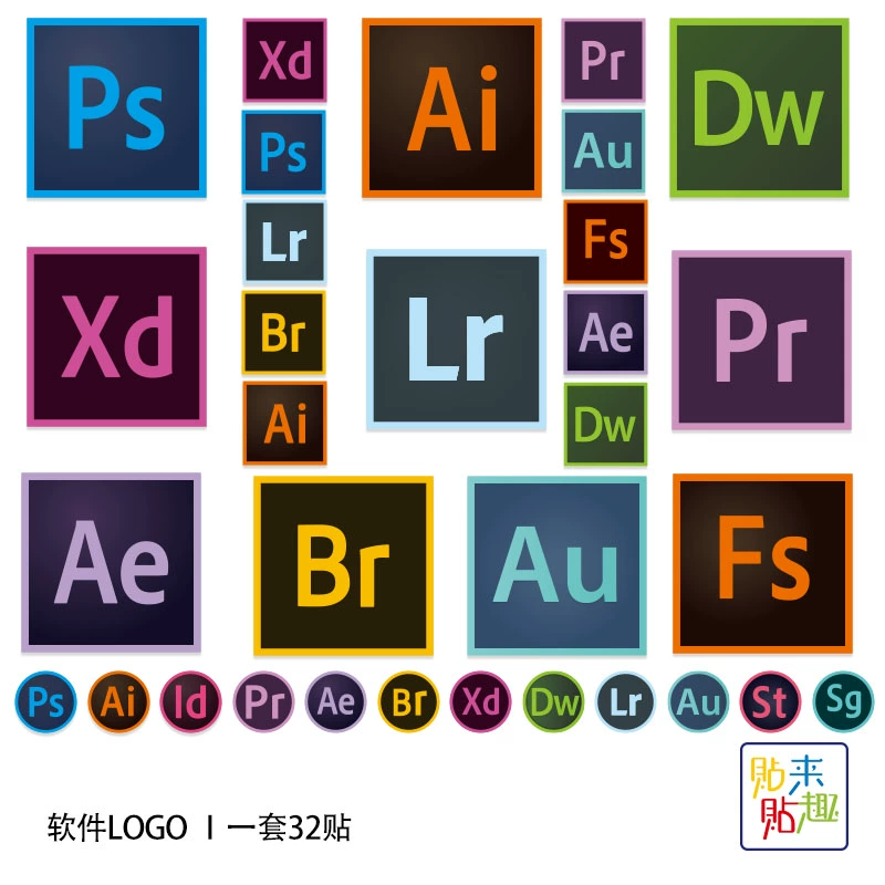 Designer software program icon LOGO sticker personalized laptop ipad tablet phone sticker waterproof