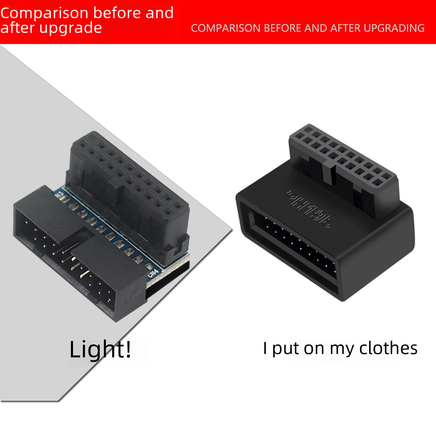 | nameOriginal | Desktop computer motherboard USB3.019/20p socket 90 degree steering head routing artifact installation accessories with Shell |