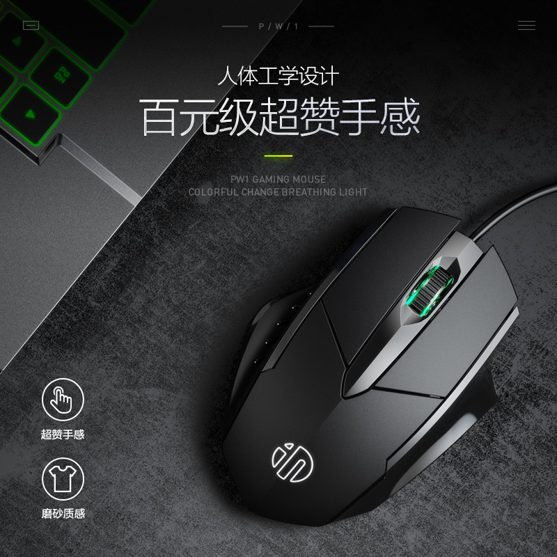 Desktop Laptop Universal Gaming Mouse Home Office Wired USB Luminous with Heavy Block PW1