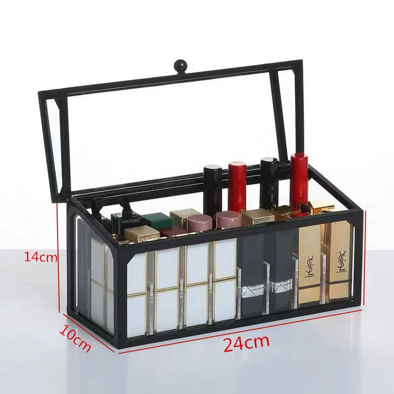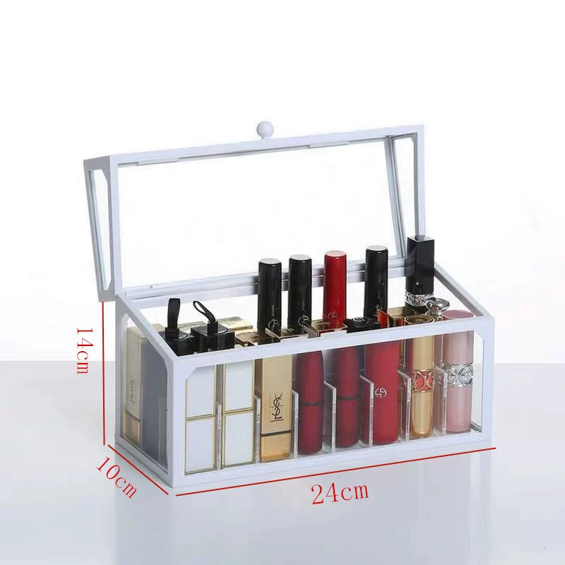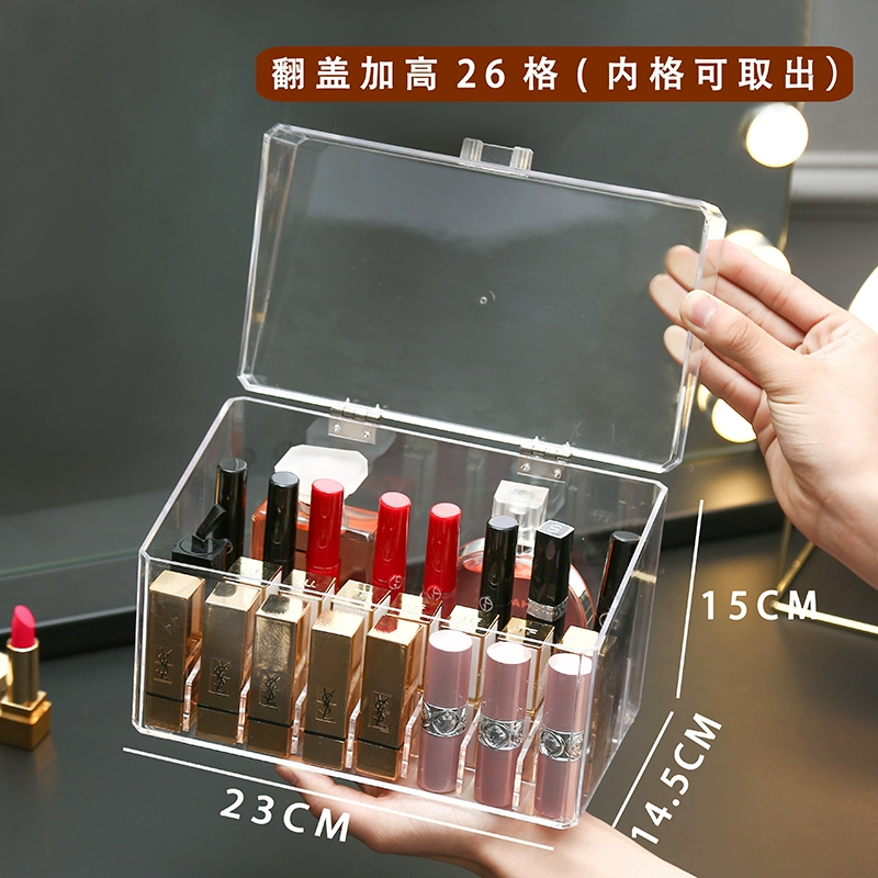 Desktop lipstick lip glaze storage box multi-grid dust-proof transparent lipstick grid with lid household cosmetics storage and organization rack