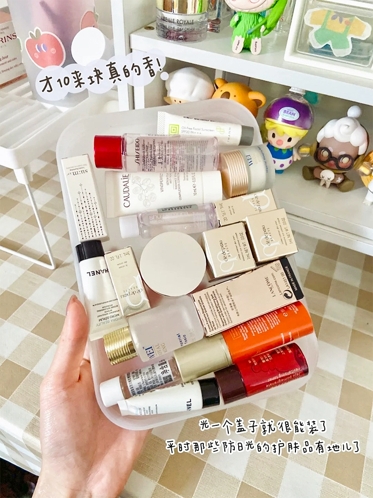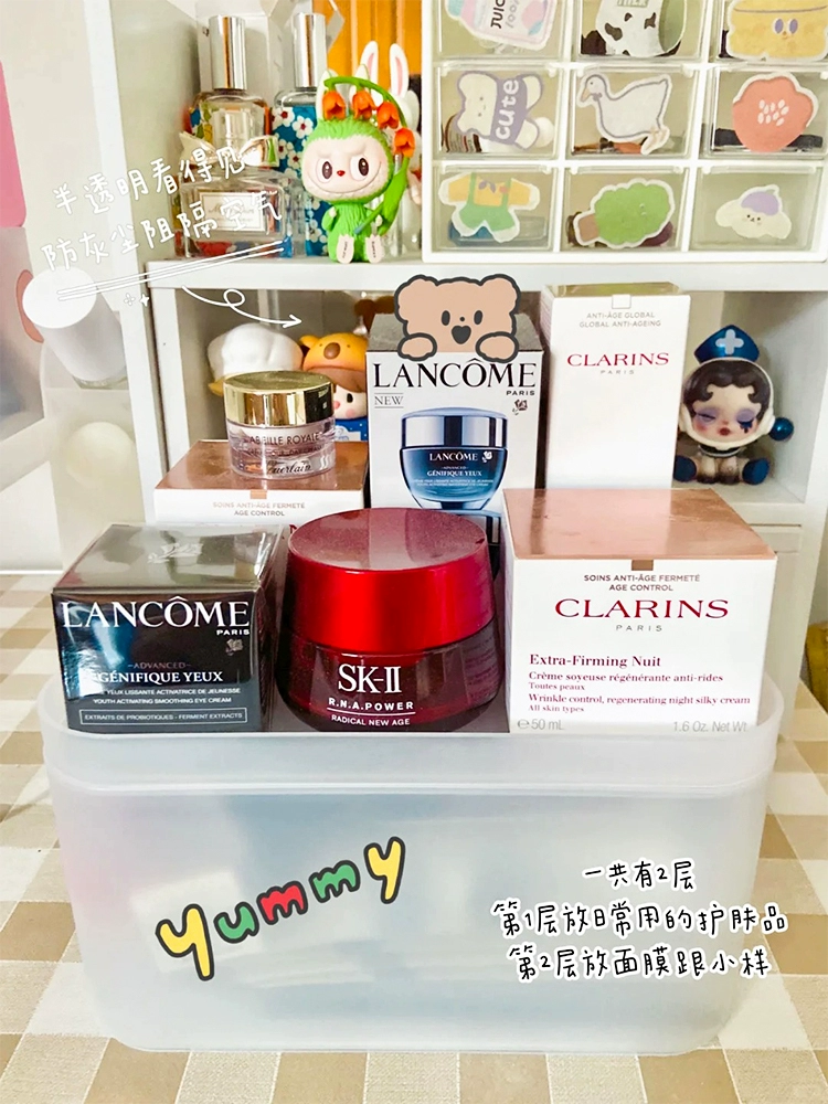 | nameOriginal | Desktop transparent cosmetics storage box with lid Large plastic storage box for dressing table mask and skin care products organization J |