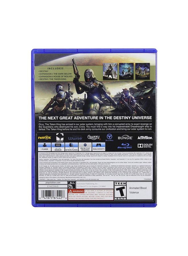 | nameOriginal | Destiny: The Taken King Legendary Edition (Intl Version) – PlayStation 4 (PS4) |