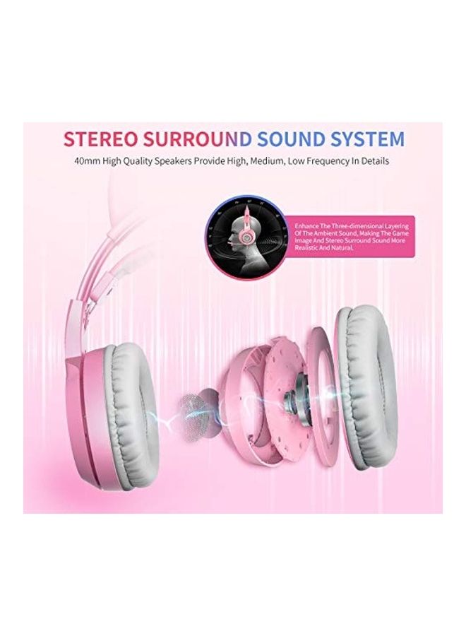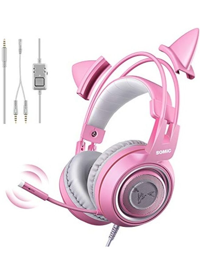 What's In The Box SOMIC G951s Pink Stereo Gaming Headset with Mic for PS4, Xbox One, PC, Mobile Phone, 3.5MM Sound Detachable Cat Ear Headphones Lightweight Self-Adjusting Over Ear Headphones for Women