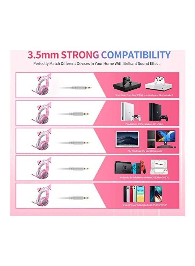 Stereo Gaming Headset With Mic For PS4 /PS5 /XOne /XSeries /Nswitch /PC/ Mobile Phone, 3.5Mm Sound Detachable Cat Ear Headphones