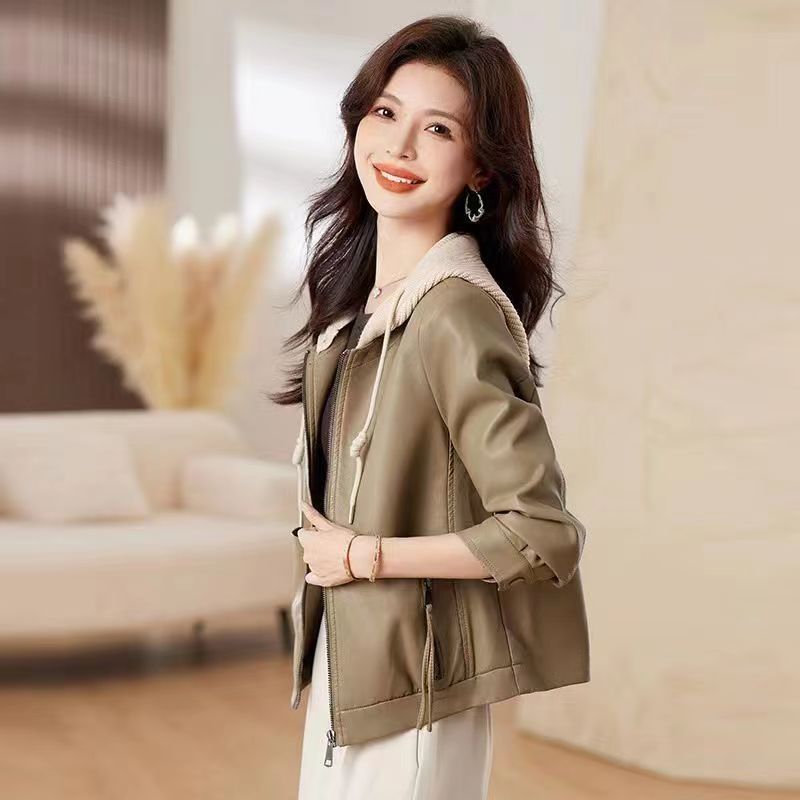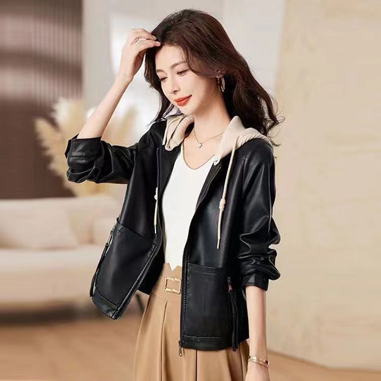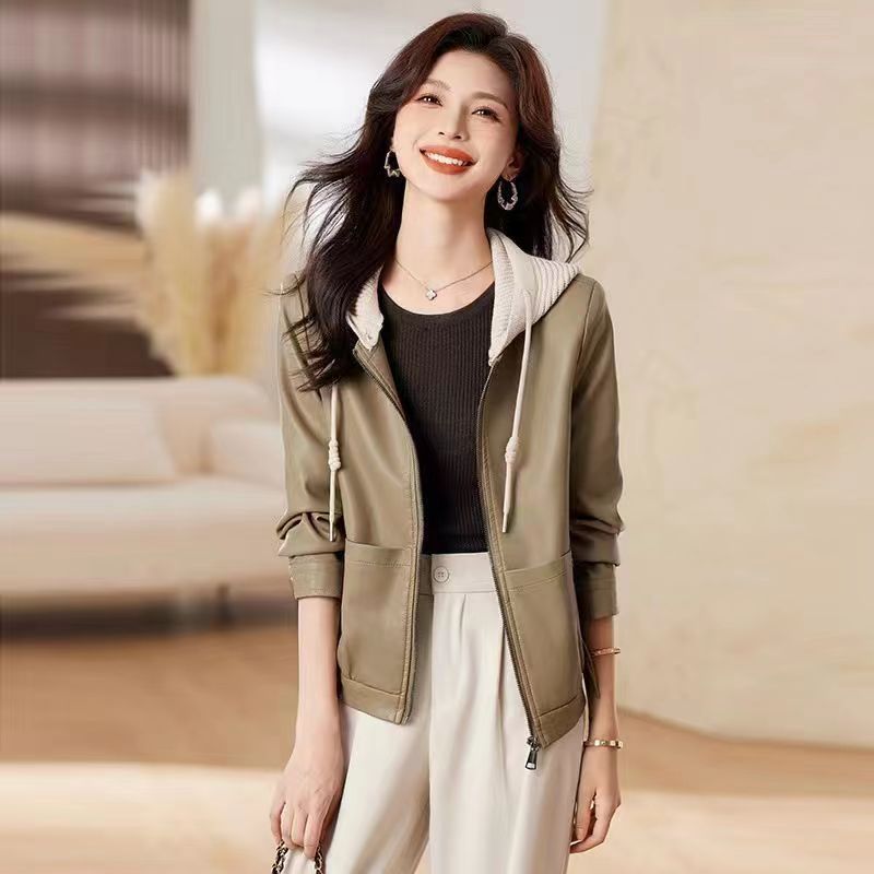 | nameOriginal | Detachable Knitted Hooded Leather Jacket Women's Short Trendy 2024 New Explosive Fashionable Elegant Haining Leather Jacket |