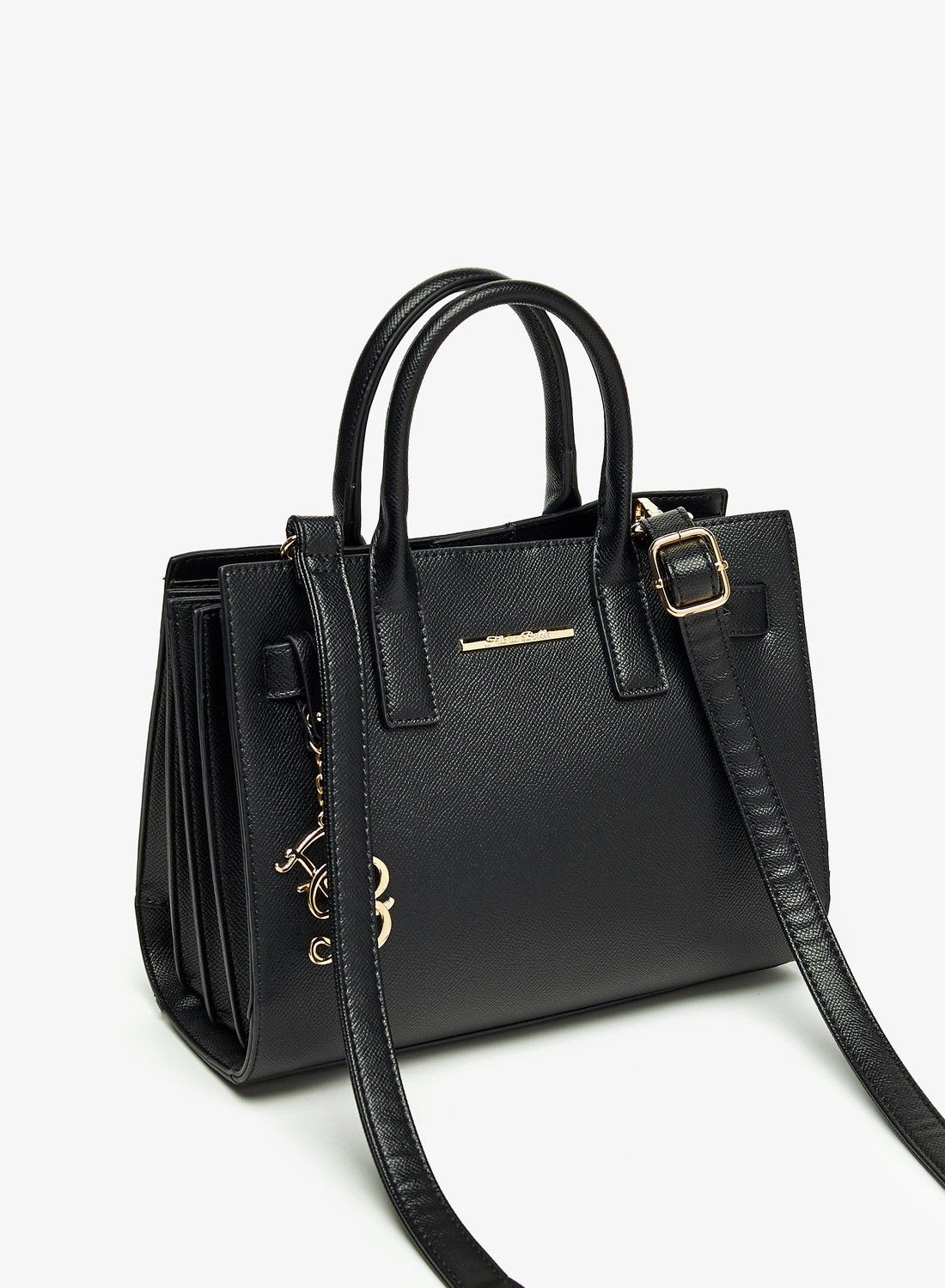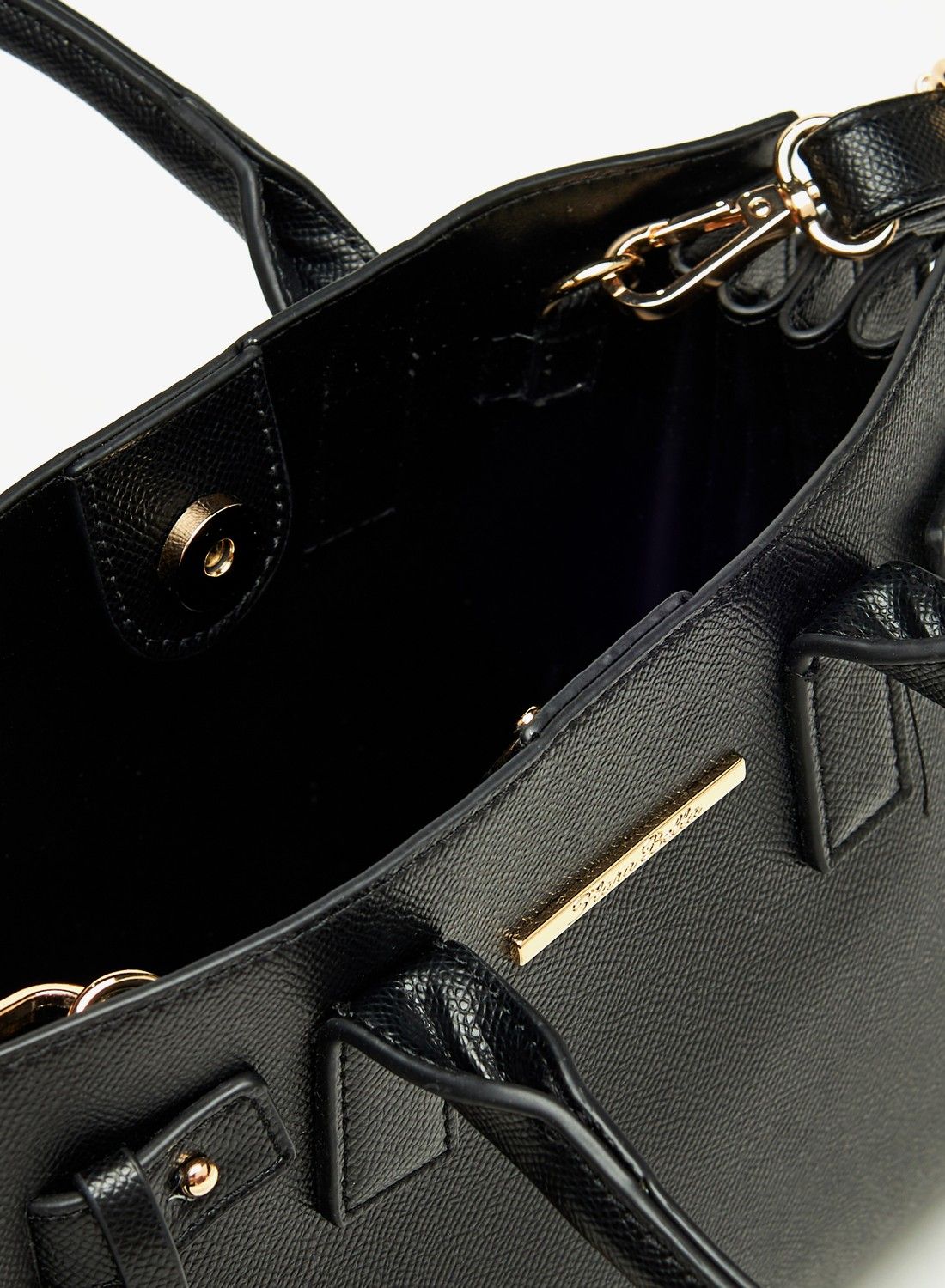 | nameOriginal | Solid Tote Bag with Detachable Strap and Tag Detail |