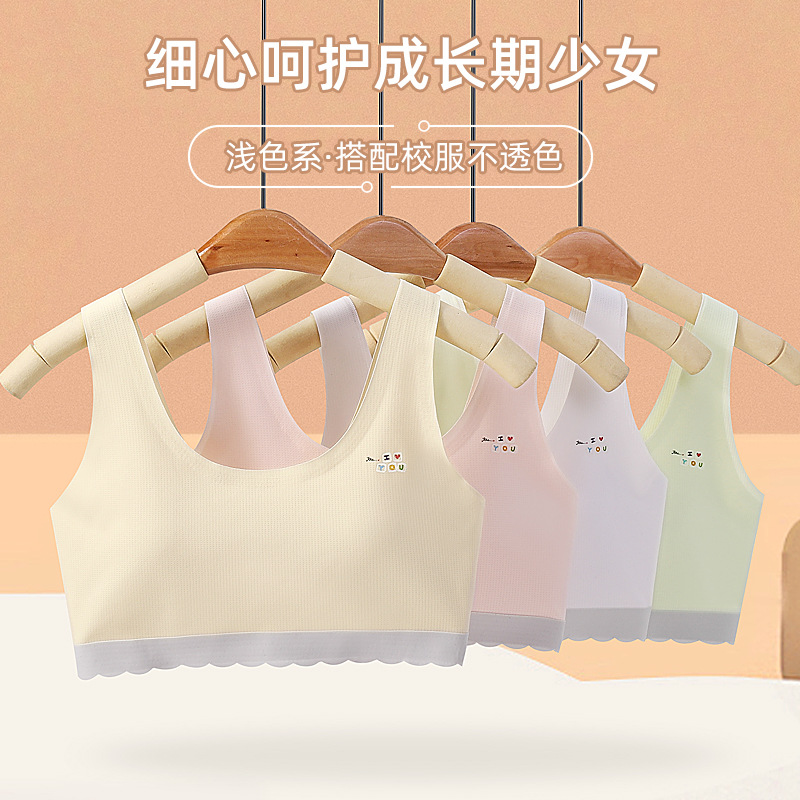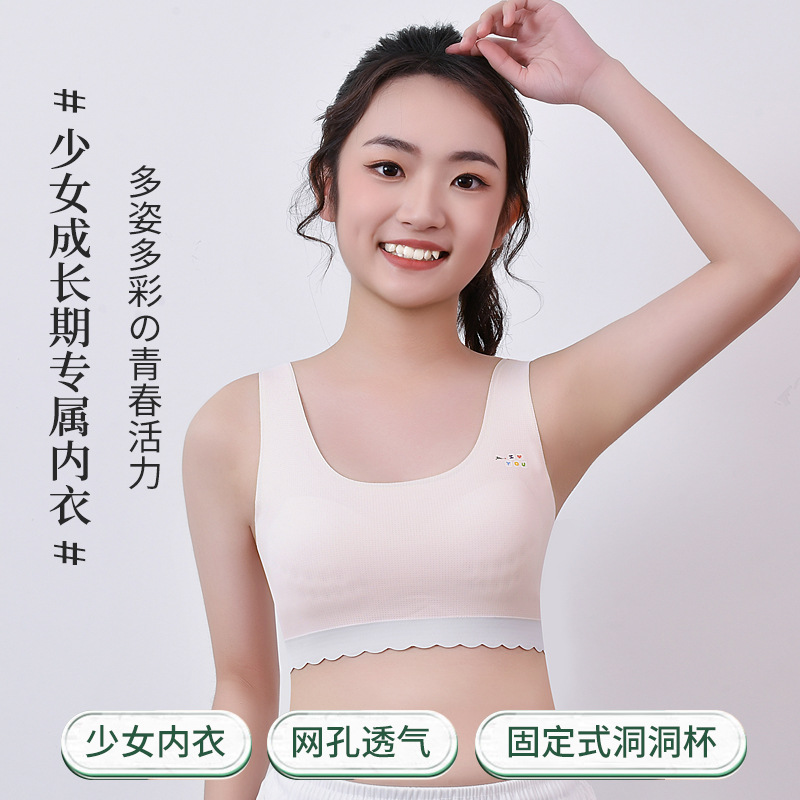 Developmental underwear girl big child student seamless sports junior high school student vest 15 years old fixed cup high school student bra