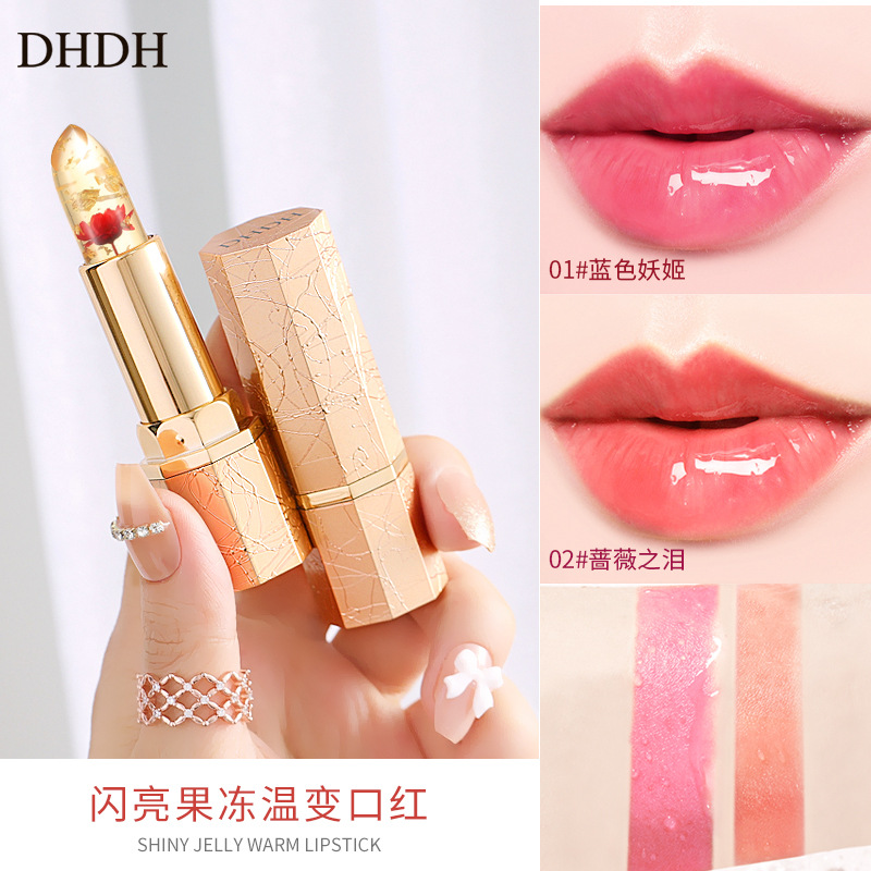 DHDH Jelly Warming Flower Lipstick Moisturizing and Moisturizing Not Easy to Stick to Cup White Water Light Doodle Lip Color Changing Lip Gloss
