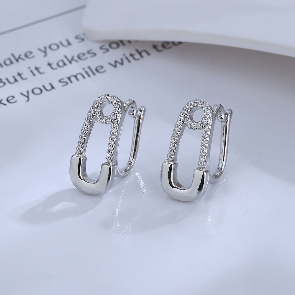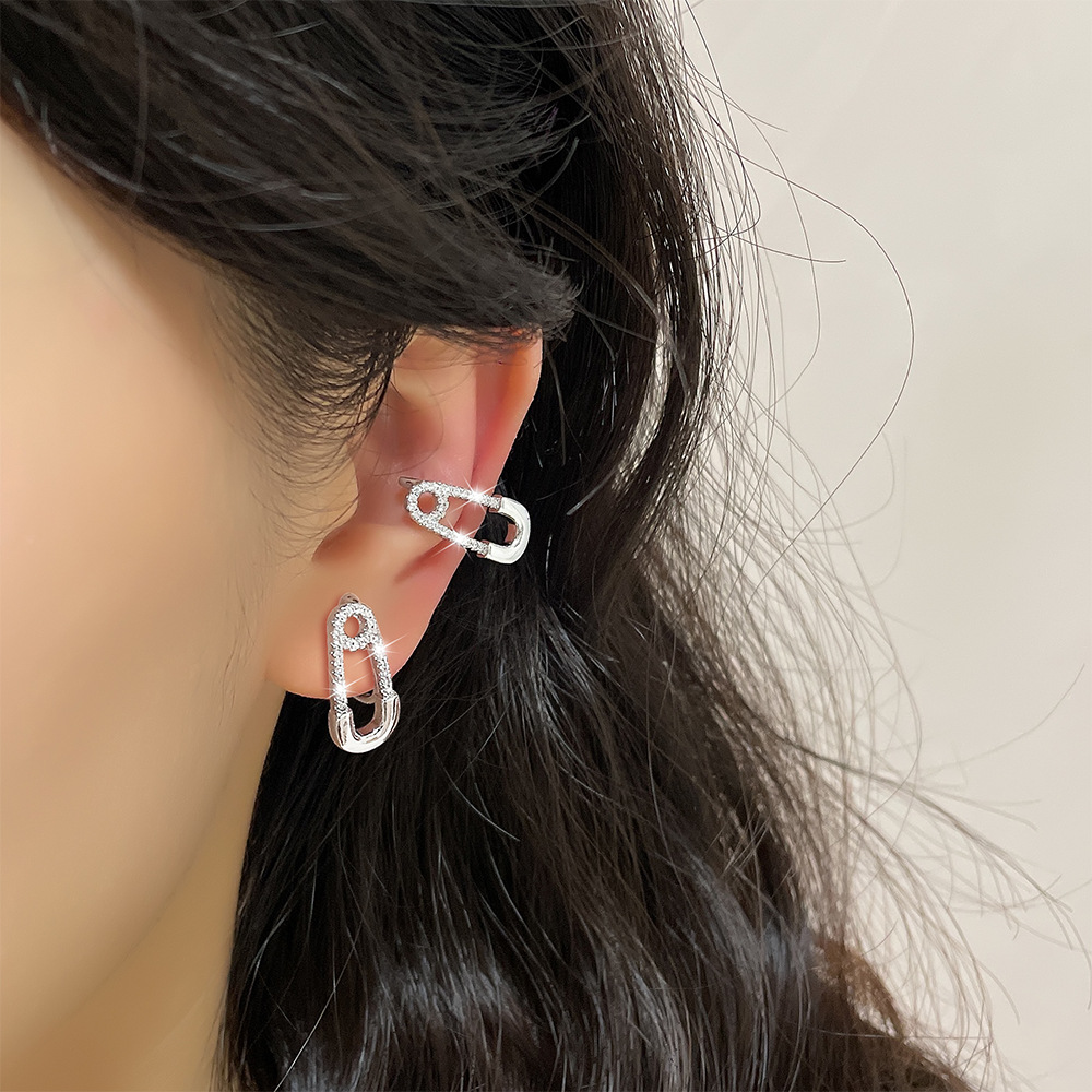 Diamond-embedded paper clip non-pierced ear clip foreign trade hot sale exquisite pin ear bone clip exaggerated sweet cool clip earrings