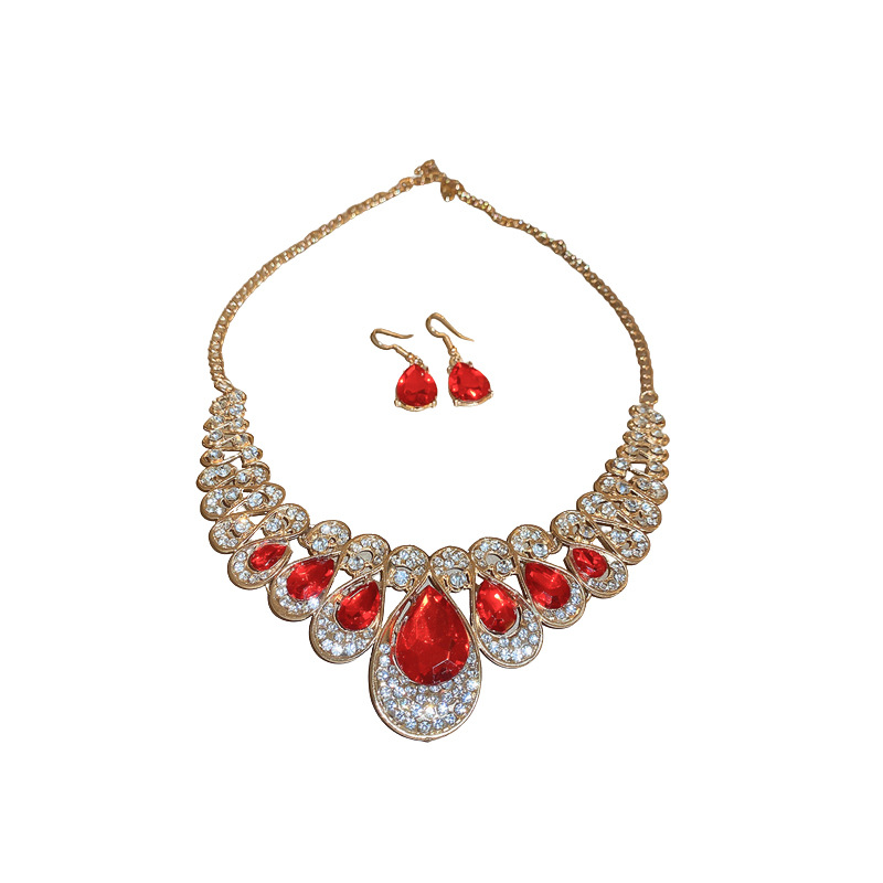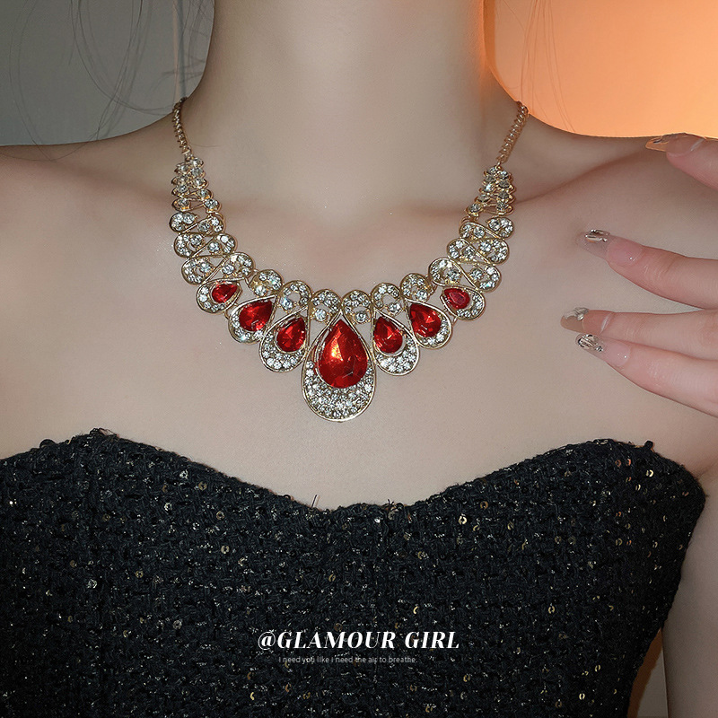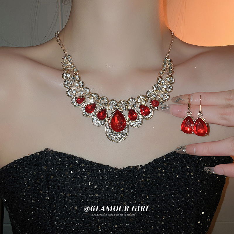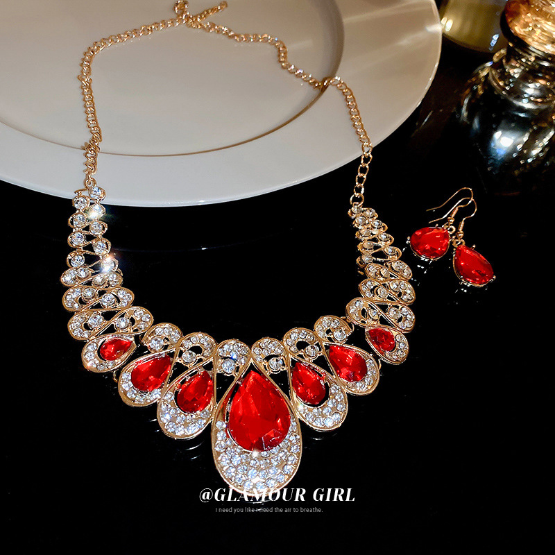 | nameOriginal | Diamond-embedded water drop earrings necklace two-piece European and American exaggerated heavy industry clavicle chain French light luxury palace style jewelry for women |