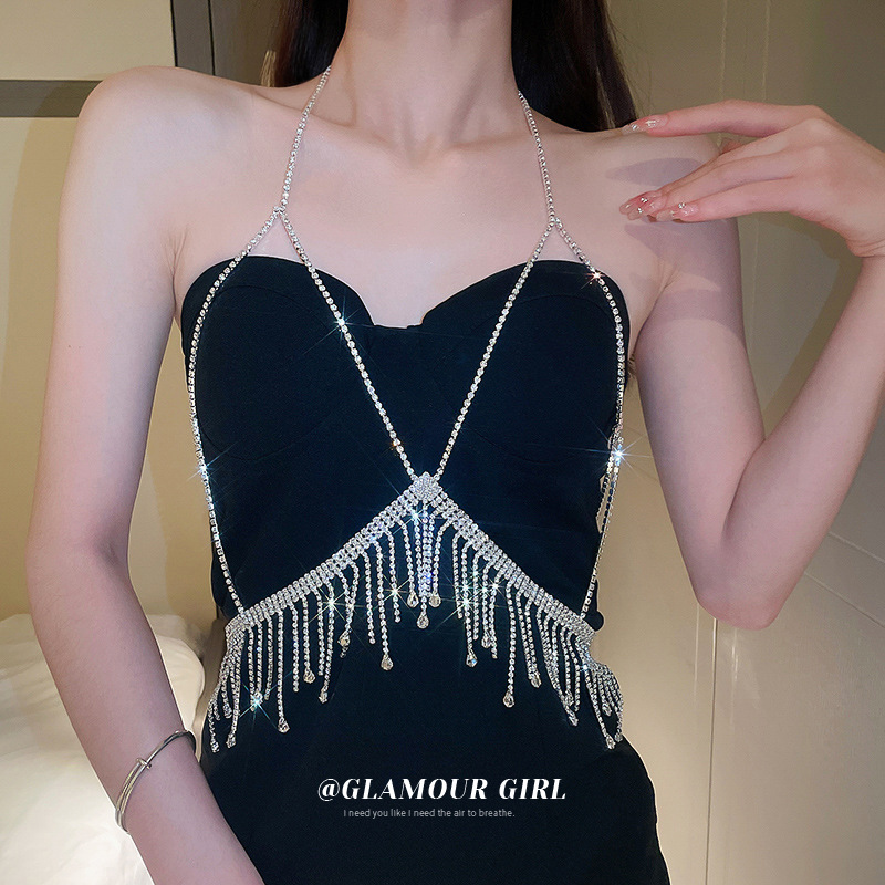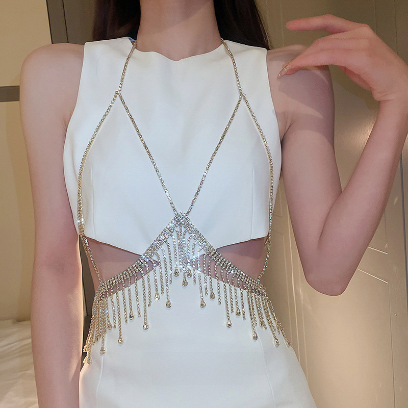 | nameOriginal | Diamond-embedded water drop tassel chest chain elegant light luxury high-grade one-piece body chain niche hot girl new chest accessories for women |