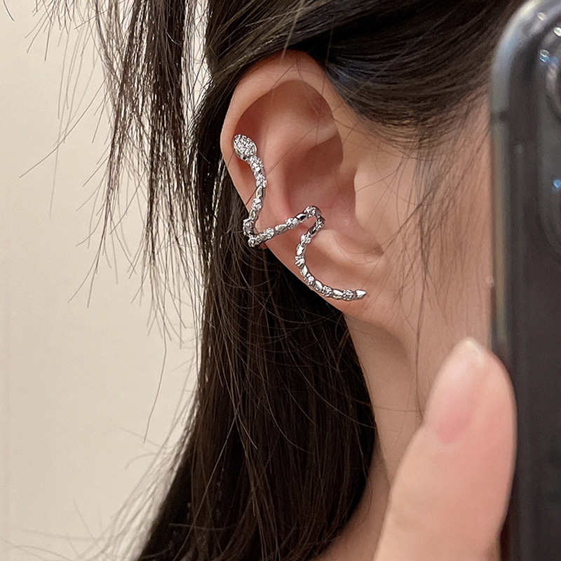 Diamond-encrusted snake-shaped ear clip sweet cool online red blogger exaggerated earrings without earholes cross-border explosions winding small snake ear bone clip