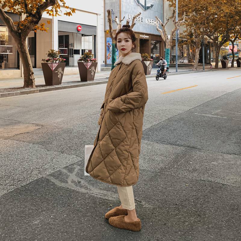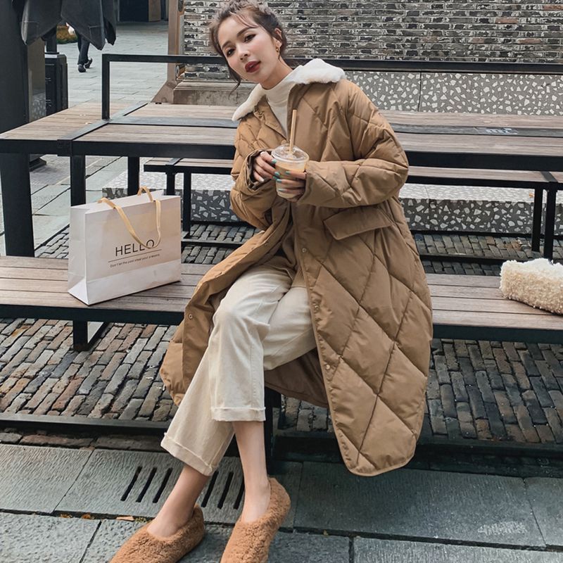 Diamond plaster down cotton-padded jacket women’s winter 2023 new Hong Kong style retro mid-length knee-length loose thick cotton-padded jacket
