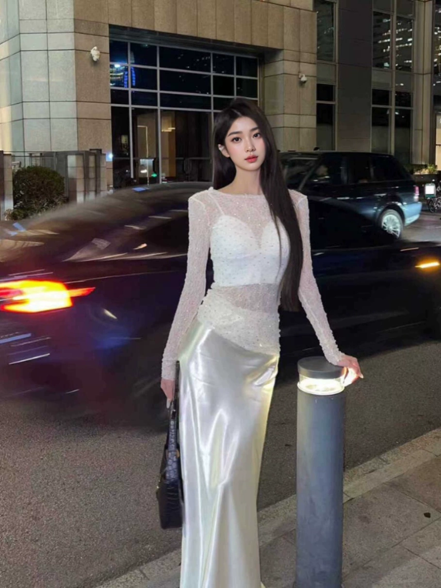 | nameOriginal | Diamond-studded sparkling hollow sexy backless slightly see-through lace top |