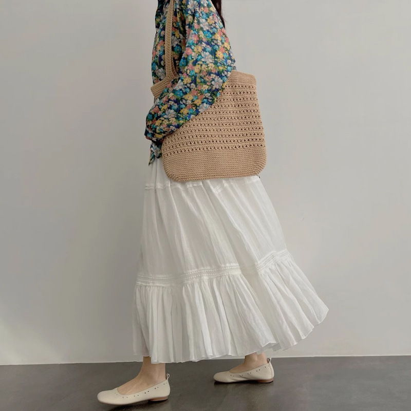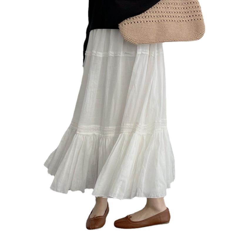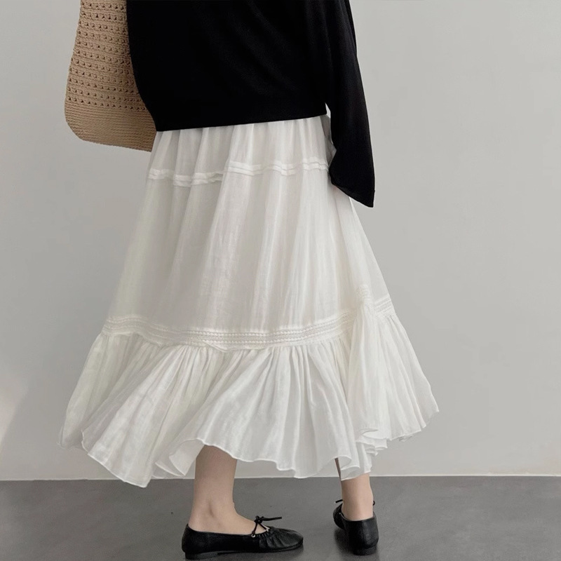 DIANRUO chic loose casual all-match stitching A- line mid-length cake group skirt white skirt trendy homemade