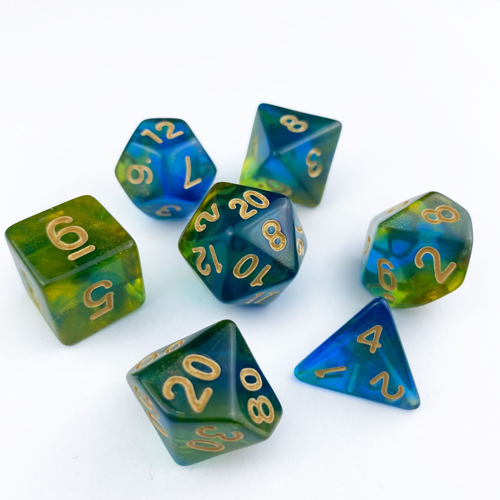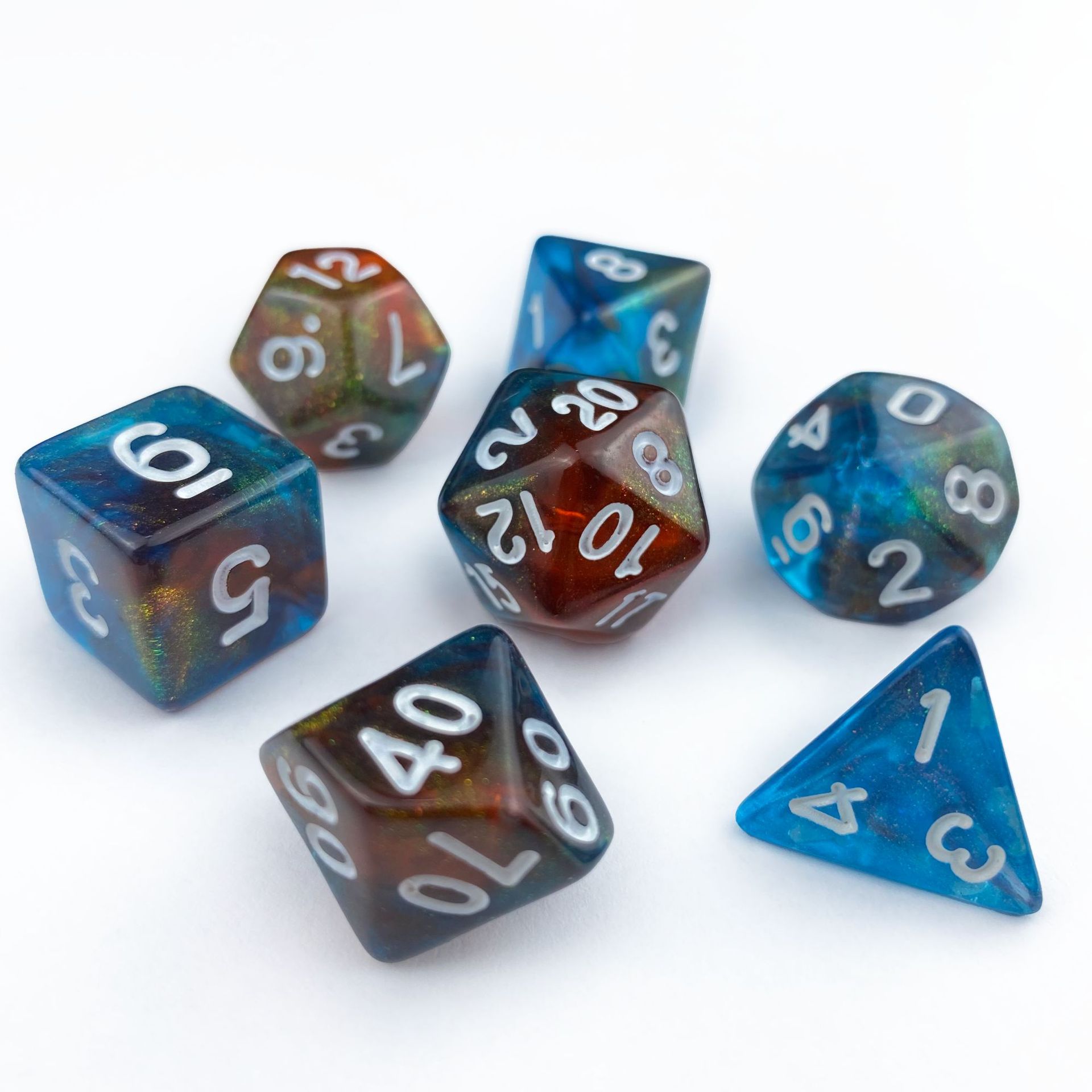 | nameOriginal | Dice board game acrylic two-color transparent chameleon cross-border COC polyhedron DND game dice running group dice |