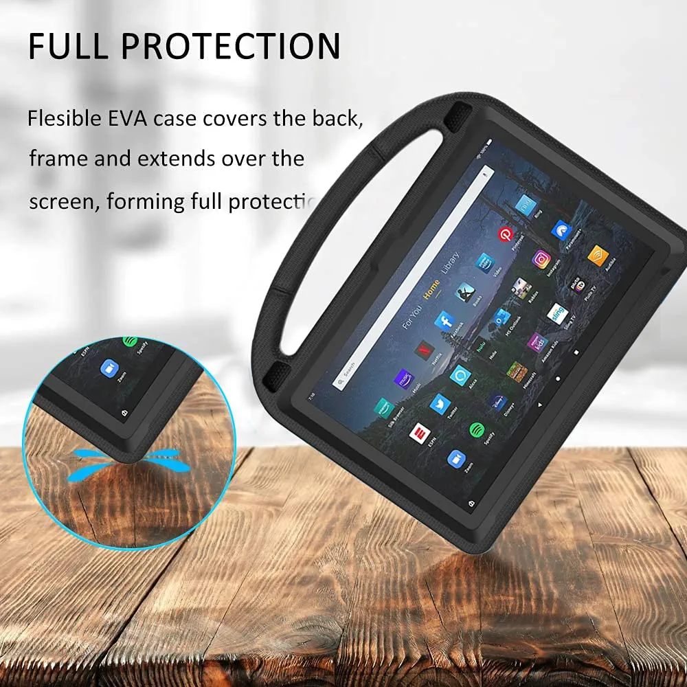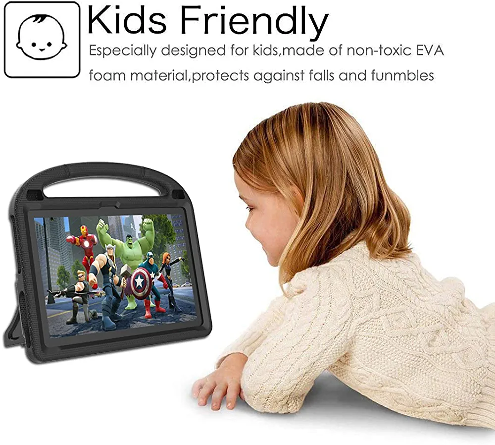 This product is made of durable EVA foam rubber, making it long-lasting and reliable. The soft and squishy material is safe for children to use and play with. It has cutouts that provide clear access to all buttons, ports, speakers, and rear-camera. The built-in handle feature serves a dual-purpose, making it easy to carry and hold. The raised screen bezel provides extra protection to the tablet. Please note that the tablet is not included, and there is no screen protector included. Before installing the tablet, kindly remove the black frame inside the case.