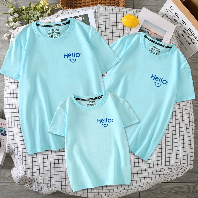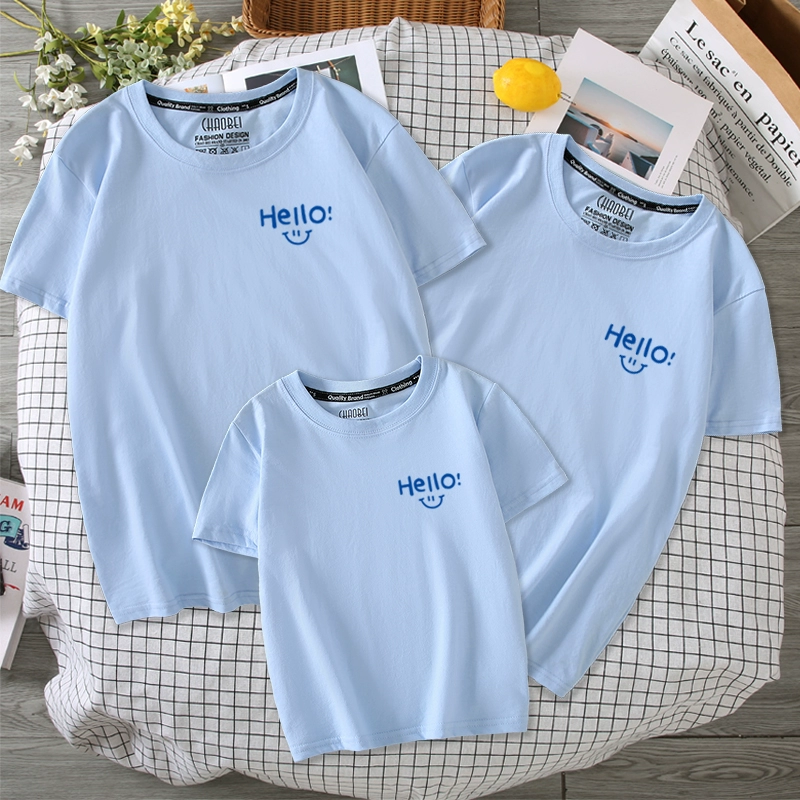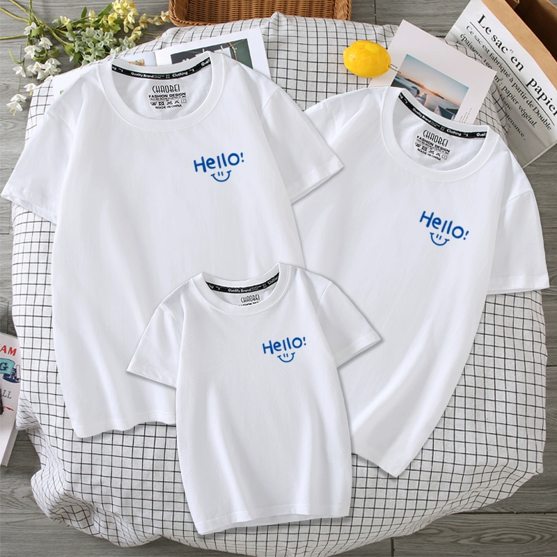 Different parent-child clothes for a family of three and four. Summer clothes for mother, daughter and mother. Summer parent-child short-sleeved simple T-shirts are trendy.