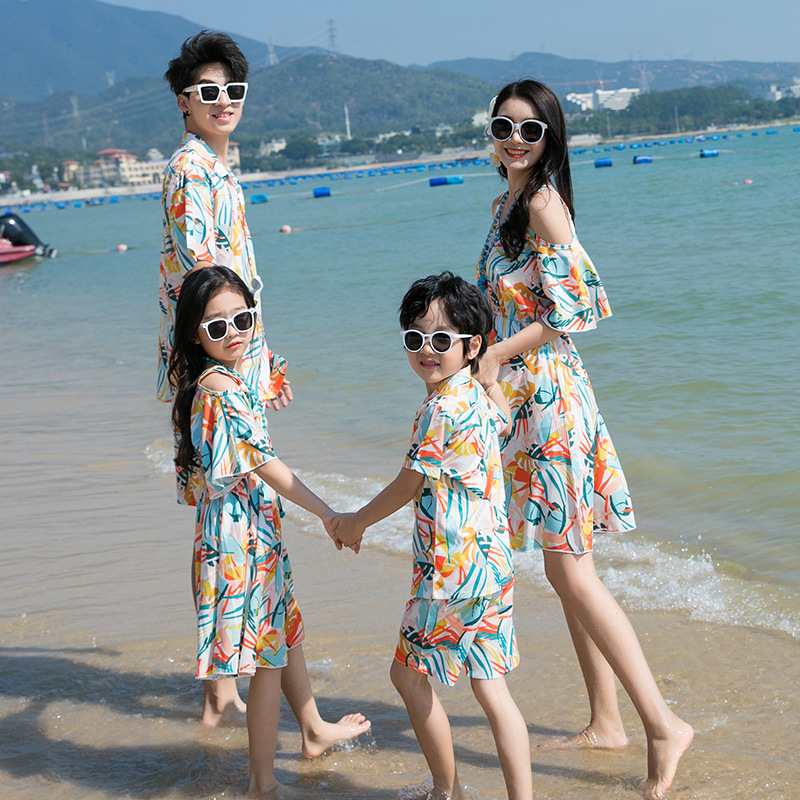 Different parent-child outfit 2024 new summer family of three four suit seaside holiday mother and daughter dress