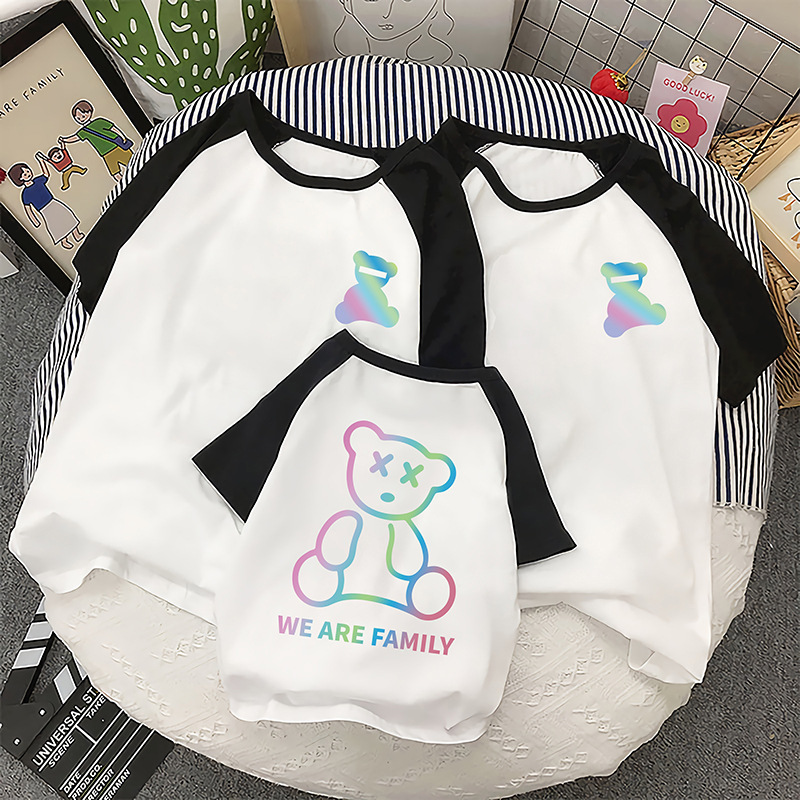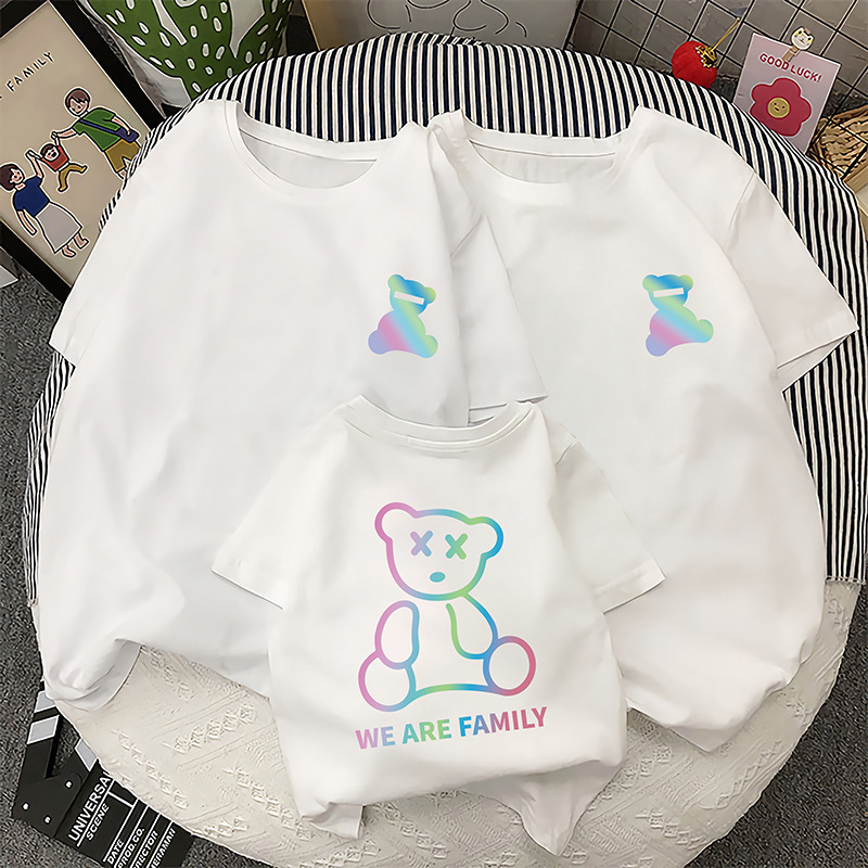 | nameOriginal | Different parent-child suit mother-child 2023 new parent-child suit a three-mouth reflective bear pure cotton short sleeve one-piece delivery |