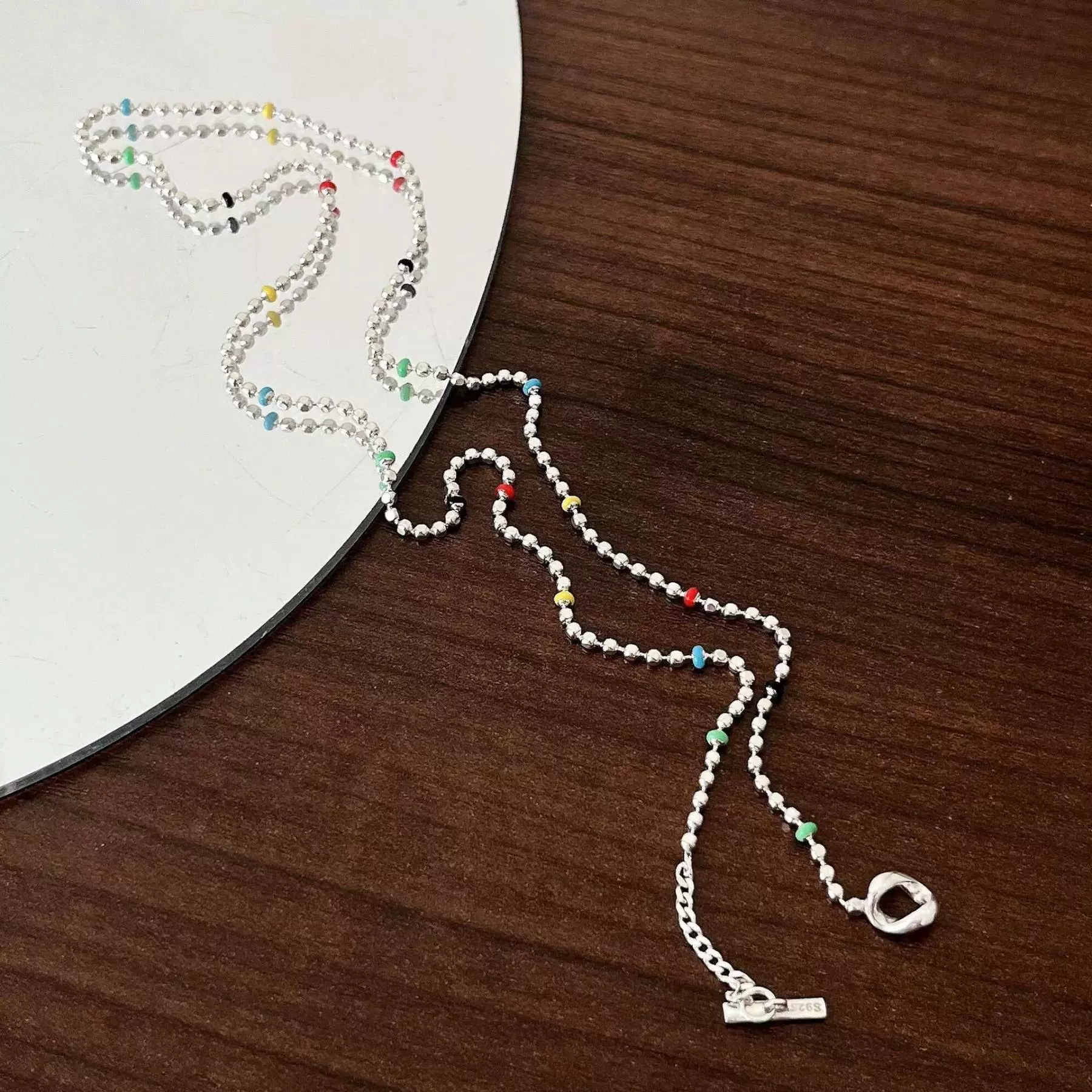Different silversmiths 925 sterling silver rainbow bean OT buckle millet beads round bead chain niche temperament female clavicle short necklace