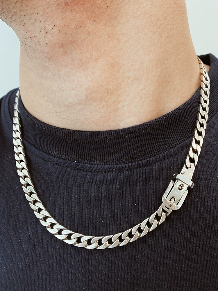| nameOriginal | Different silversmiths Cuban chain 925 sterling silver belt buckle simple plain silver tank chain hip-hop trendy men's and women's clavicle necklace |