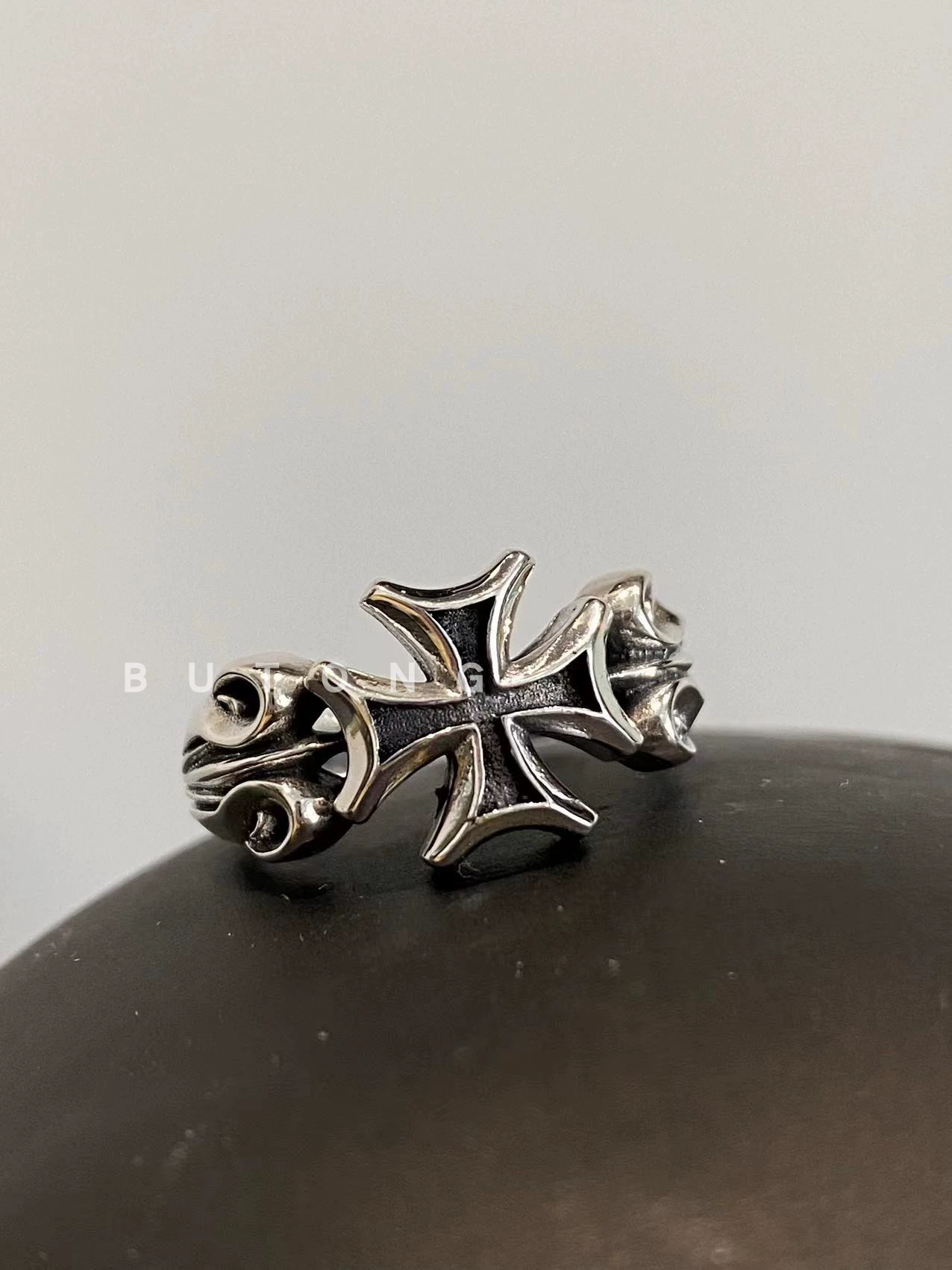 | nameOriginal | Different silversmiths European and American 925 sterling silver vintage cross open ring hip-hop punk rock couple rock ring |