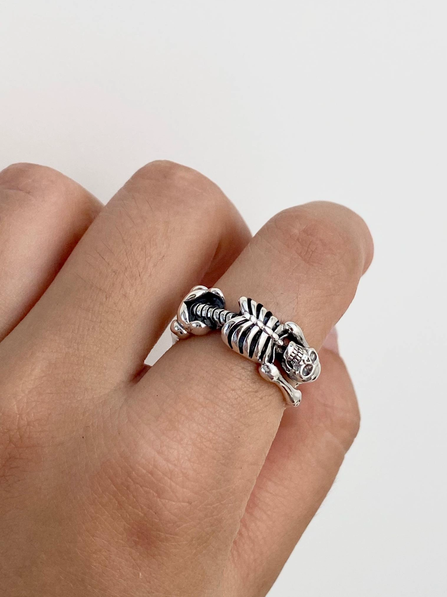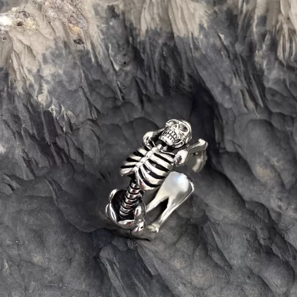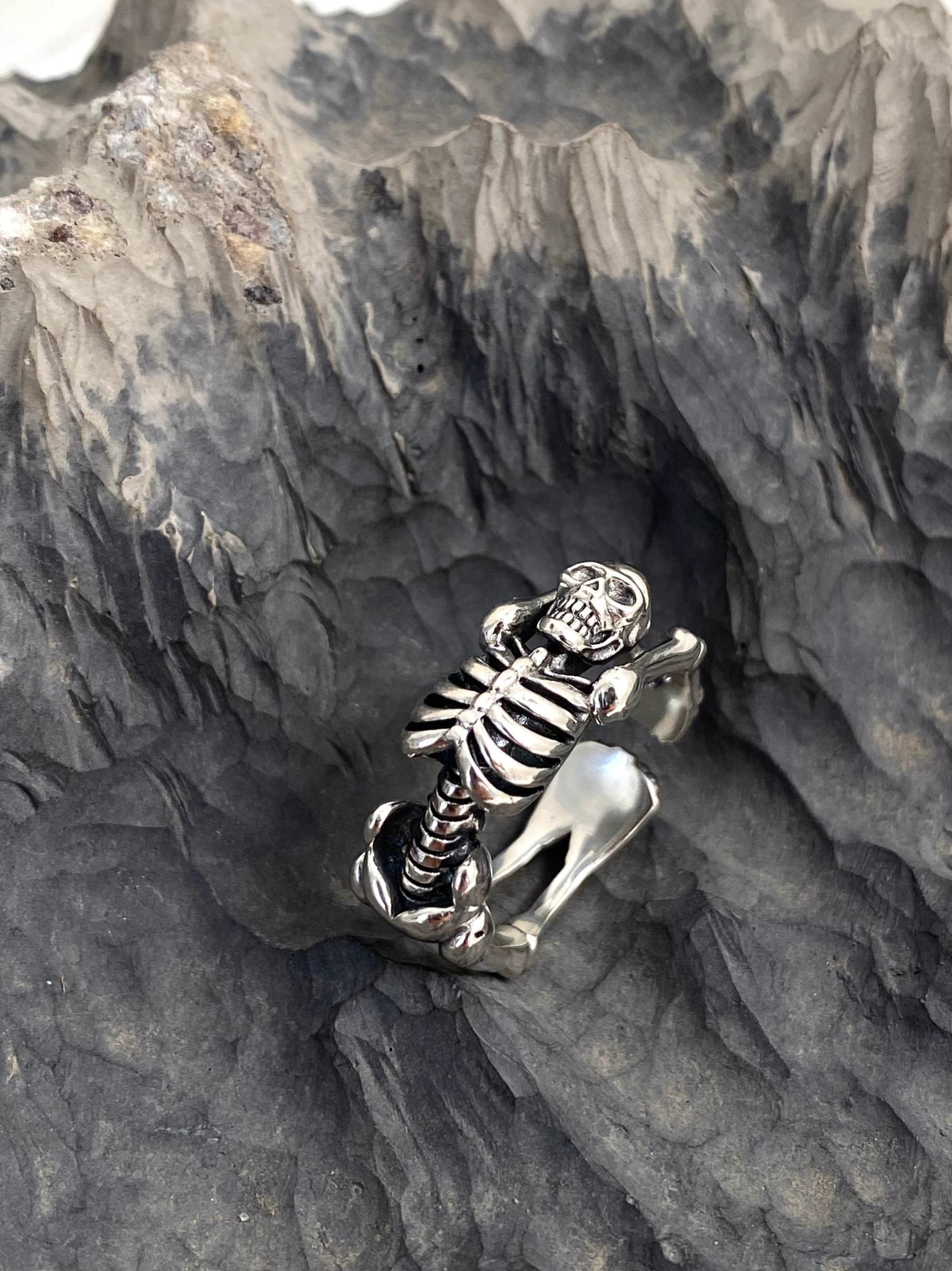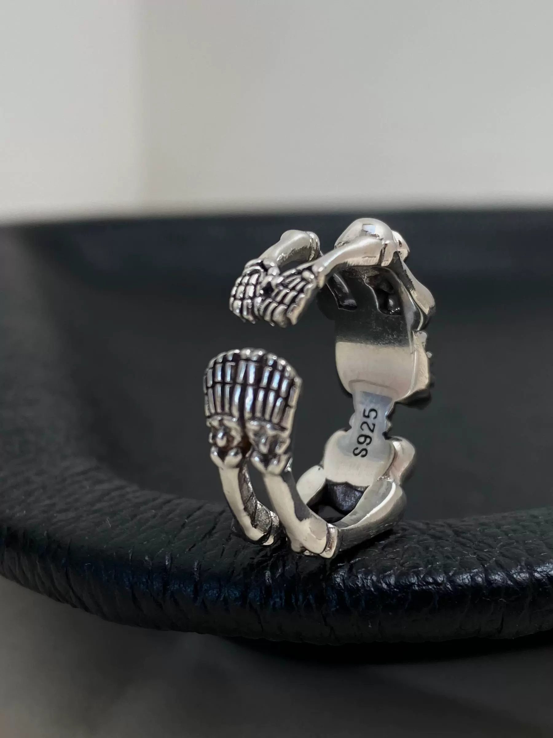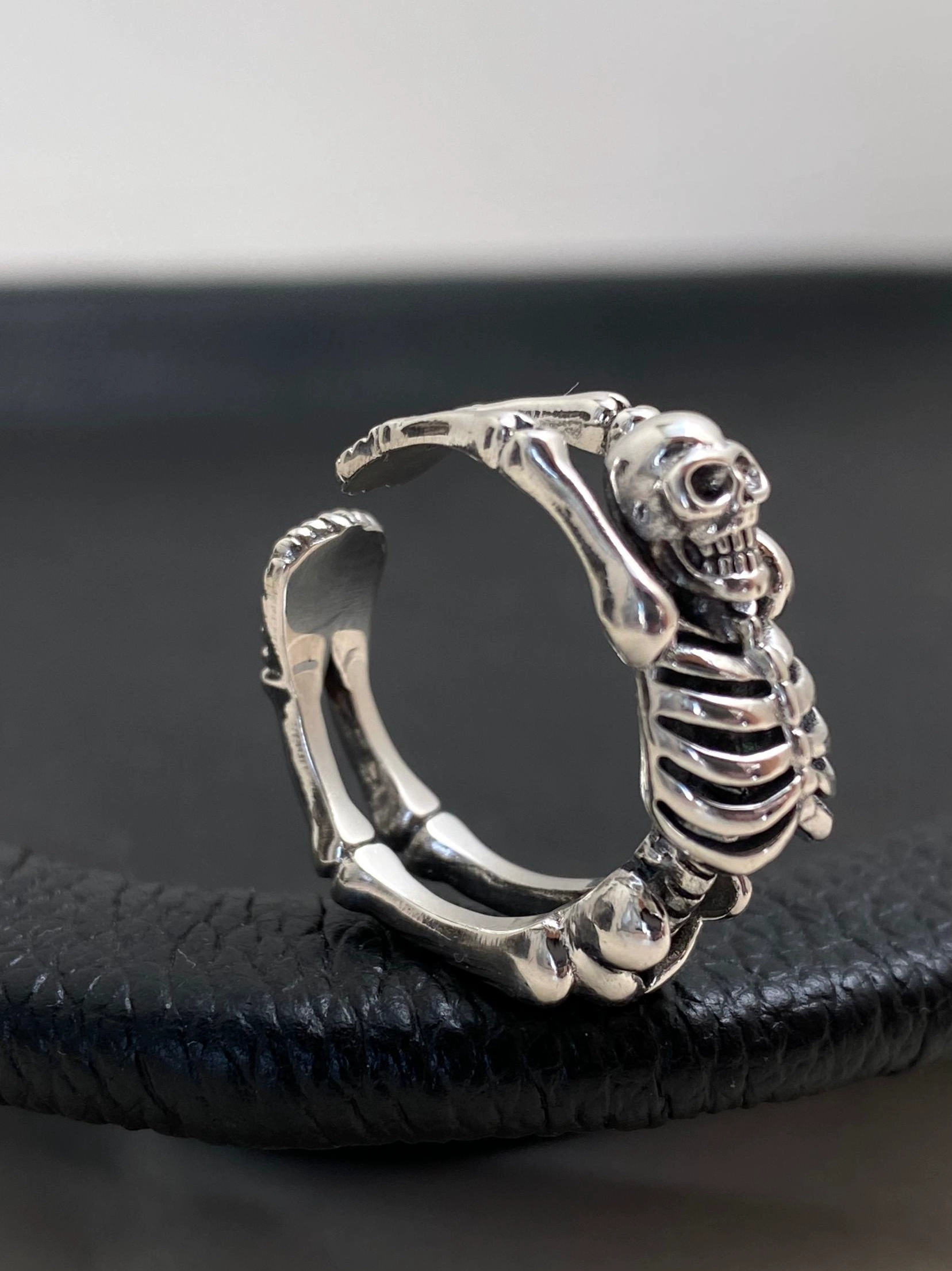| nameOriginal | Different silversmiths retro 925 sterling silver skull skeleton open ring punk dark cold men and women silver ring |