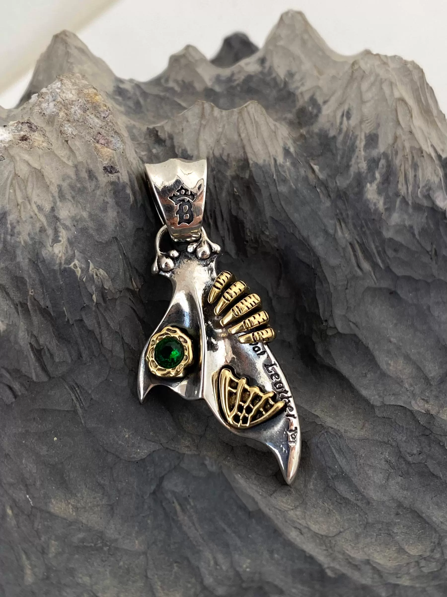 | nameOriginal | Different silversmiths vintage 925 sterling silver inlaid with zircon and diamond skull love fishtail pendant couple style punk necklace |