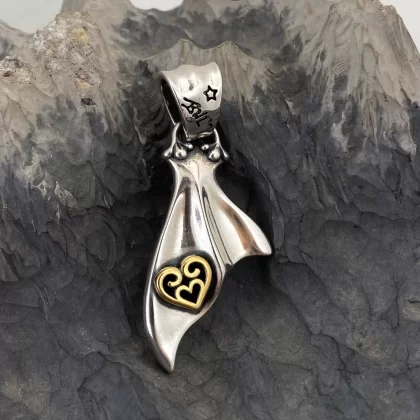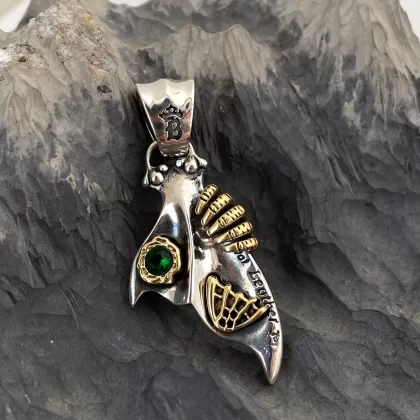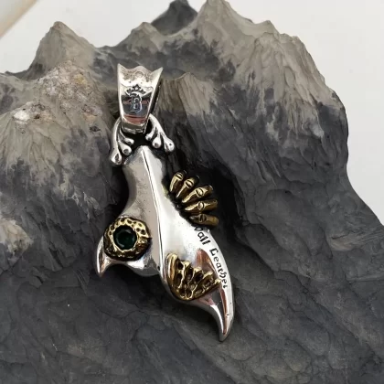 | nameOriginal | Different silversmiths vintage 925 sterling silver inlaid with zircon and diamond skull love fishtail pendant couple style punk necklace |