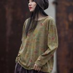 Digital Printing Sand Wash Dressed 24 Spring Cotton and Linen Women’s New Long-sleeved T-shirt Artistic All-match Travel Women’s Bottoming