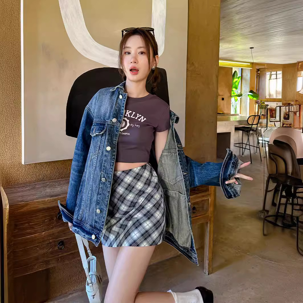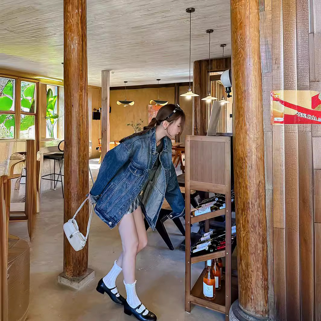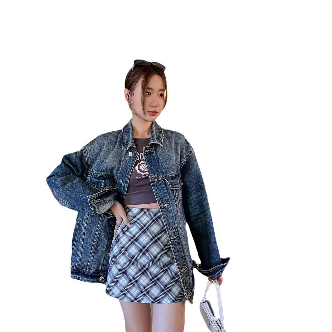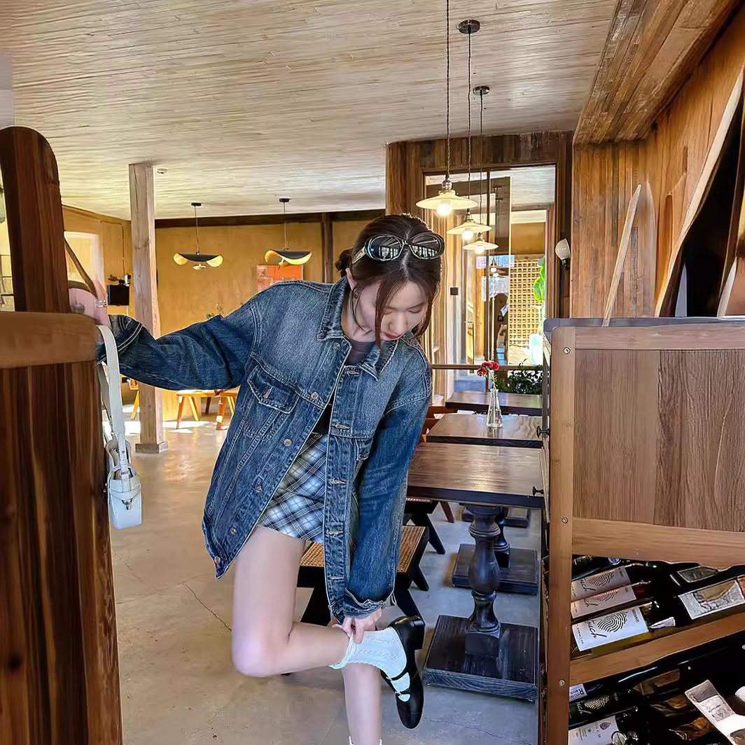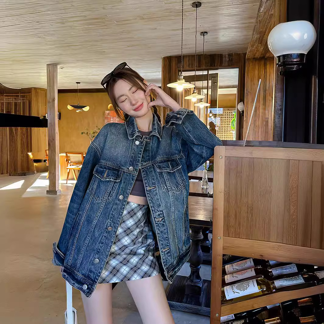 [DIGM] Ivy Korean style retro washed casual loose long sleeve mid-length Denim coat for women 88037